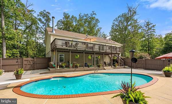Welcome home to this move-in ready retreat where thoughtful updates, privacy, and an unbeatable location come together-just bring your furniture! Nestled on a private 3.49-acre lot with no HOA, this 3-bedroom, 2-bath home offers peaceful living just minutes from the Shenandoah River, National Parks and Forest, and less than 10 minutes to Route 66 and downtown Front Royal. Enjoy convenient access to shopping, dining, recreation, and numerous nearby golf courses-all while enjoying a secluded setting. Inside, the home features newer LVP flooring (2018) and fresh paint throughout, creating a bright and welcoming atmosphere. The primary bedroom includes a spacious, fully remodeled ensuite bathroom (2018), complemented by a recently renovated guest bathroom (2018). The kitchen is both functional and stylish with upgraded appliances, custom cabinetry, and a custom butcher block island, ideal for everyday living and entertaining. The unfinished basement offers excellent potential for future living space, storage, or a home gym. Outdoor living is a highlight with a large in-ground pool and patio, perfect for entertaining, all set within a fenced rear yard. A SunSetter awning (2023) adds shaded comfort, while pet owners will appreciate the invisible dog fence (2023). Additional exterior upgrades include a LeafFilter gutter system (2025) for low-maintenance peace of mind. A standout feature of the property is the massive 46x40 detached garage, complete with electric, a wood stove, and extensive upgrades including new roof, windows, gutters, and siding (2020)-ideal for car enthusiasts, hobbies, or a workshop. Major system updates provide confidence for years to come, including an updated heating and air unit (2024) and a new hot water heater (2023). This private, well-maintained property is priced to sell and offers a rare combination of space, updates, and location. Don't miss this one-schedule your showing today.