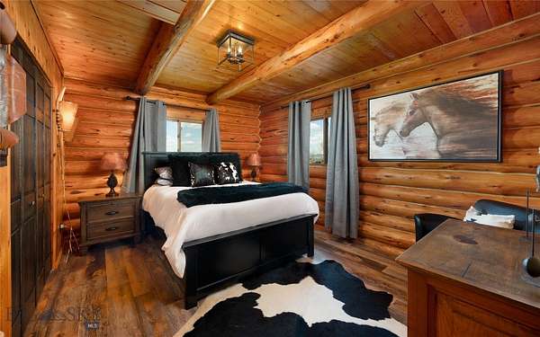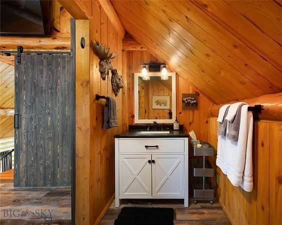 Springhill Mountain Retreat with Endless Possibilities + the ability to build more structures. Nestled on over 11 picturesque acres along Springhill, this remarkable property captures unobstructed Bridger Mountain views and offers multiple income-producing or lifestyle opportunities. The main 3,300+ sq ft refurbished log cabin exudes Montana charm with vaulted ceilings, a sunlit living room with wood-burning fireplace, and a beautifully updated kitchen. The loft-style primary suite features a soaking tub and private balcony, while the finished basement adds extra bedrooms, a recreation room, and ample storage. A 900 sq ft modern ADU, built in 2020, includes a full kitchen, bedroom, bathroom, and two-car garage-perfect for guests, tenants, or multigenerational living. Both dwellings currently operate as thriving short-term rentals. Also included is a versatile 2,200 sq ft heated shop with an attached 938 sq ft living space featuring a kitchenette, office/bedroom, and full bath-ideal for hobbyists, collectors, or additional rental income. With over 11 acres allowing livestock, additional outbuildings, and potential for future expansion, this is a truly one-of-a-kind Springhill offering just minutes from Bozeman.