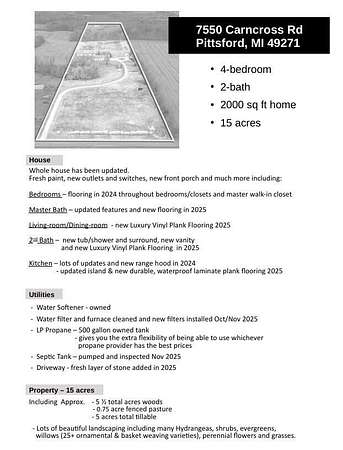 Land with Home for Sale in Pittsford, Michigan