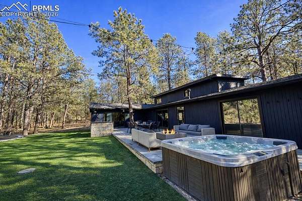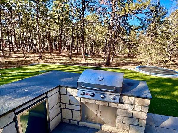 Welcome to a private Black Forest retreat where Colorado outdoor living meets turnkey convenience. Situated on 2 usable acres, this beautifully maintained home offers the perfect blend of space, functionality, and lifestyle. Inside, the home features a thoughtfully updated interior with comfortable living spaces, an inviting kitchen, and flexible bedrooms ideal for everyday living, guests, or work-from-home needs. The true showpiece is the newly completed outdoor living area designed for year-round entertaining. Enjoy a fully equipped outdoor kitchen and grilling area, fire feature, and hot tub - all set within a newly professionally installed low-maintenance artificial turf backyard that creates a lush, usable space without the upkeep typically associated with acreage living. Additional highlights include ample parking, a workshop/RV garage, barn/workshop and open acreage at the end of a culdesac offering privacy and versatility for hobbies, recreation, or future expansion. Perfectly positioned in Black Forest with easy access to Colorado Springs amenities, this property delivers the rare opportunity to enjoy acreage living with modern upgrades and effortless outdoor entertaining.