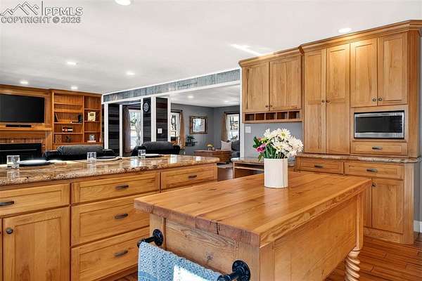 Amazing 4.34-acre treed property featuring a beautifully updated 4-bedroom, 4-bath home plus a 40x60 drive-through barn - ideal for equipment, vehicles, hobbies, or livestock. The home includes an attached 4-car garage with partially heated workspace and loft storage for added functionality. The remodeled kitchen showcases custom cabinetry, slab granite countertops, and stainless steel appliances - perfect for everyday living and entertaining. The spacious primary suite offers a custom bath with heated tile floors and a walk-in shower featuring dual shower heads. Enjoy outdoor living from two composite decks surrounded by mature trees and privacy. Located in award-winning D-20 schools, this property combines space, upgrades, and versatility.