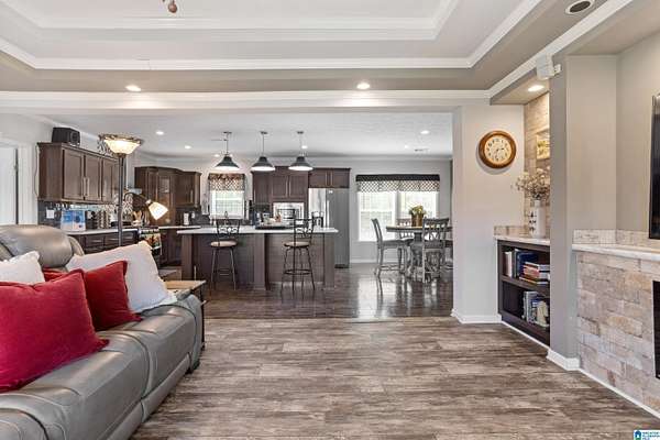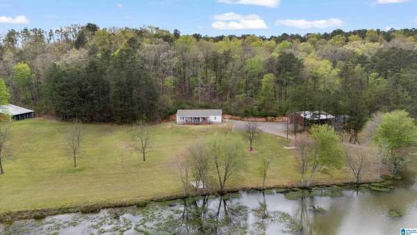 SERENE and very private home (2019) w/over 2,000 SQ FT of beautiful living space! You'll never want to leave your front porch! Whether you're watching the sun rise over your very own private lake or relaxing after work, you're sure to enjoy this huge front porch (8' x 33'). Inside, you'll find an open floor plan with beautiful finishes, such as LVP FLOORING, surround sound and immaculately cared for. Private master suite w/newest styles, incl tub & walk-in shower! Two additional BRs on other end of home plus an oversized laundry room. All appliances remain, incl fridge & W & D. You'll LOVE the ON-DEMAND water heater!!! Don't stop with just the house - wait until you see this huge 1500 SQ FT DETACHED GARAGE! It's large enough for motor home storage, or for any type shop you desire! It is insulated and there is water available also at the garage. An additional storage building is behind this building that also remains. LOCATION & PRIVACY above any other!!!!