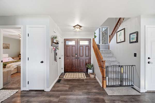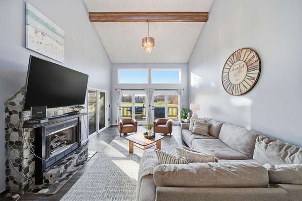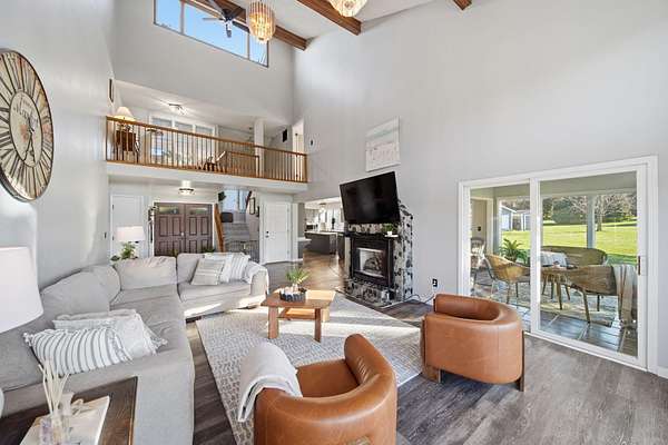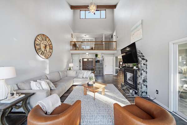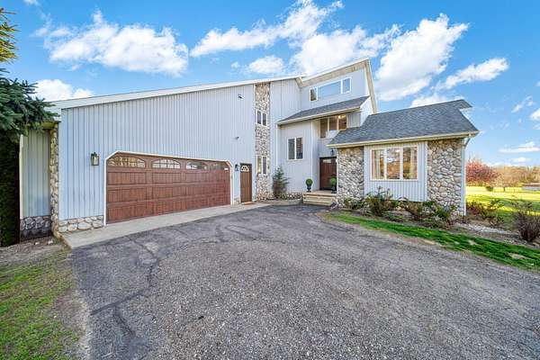 Tucked away on 2.3 private acres, 7551 Tucker Lane is a hidden retreat where elegance meets everyday comfort. From the moment you enter, soaring vaulted ceilings and a striking stone fireplace create a warm, inviting atmosphere. The expansive kitchen is a dream for gathering and creating, while the sun drenched all seasons room opens to a brand-new deck perfect for quiet mornings or evening unwinding. The primary suite is a true escape, featuring its own balcony, a spa-like ensuite with walk-in shower, deep jetted tub, and a show stopping walk-in closet. With 4 bedrooms, 3 baths, main floor laundry, and ample space to live and play, this property offers both function and freedom. A deep 2.5 car garage and additional shed ensure there's room for all your passions.