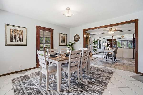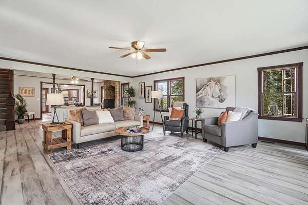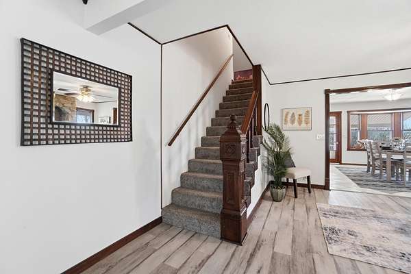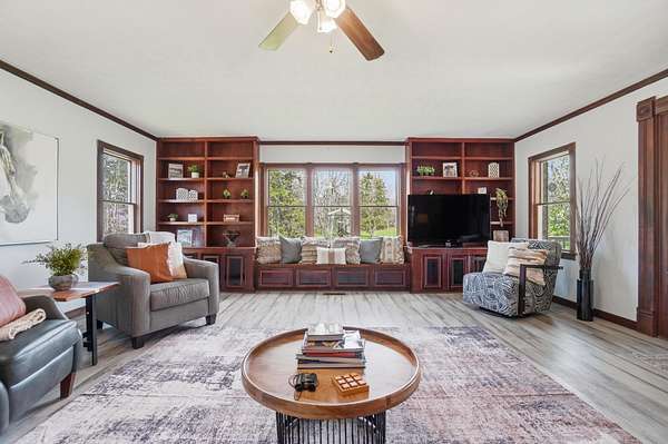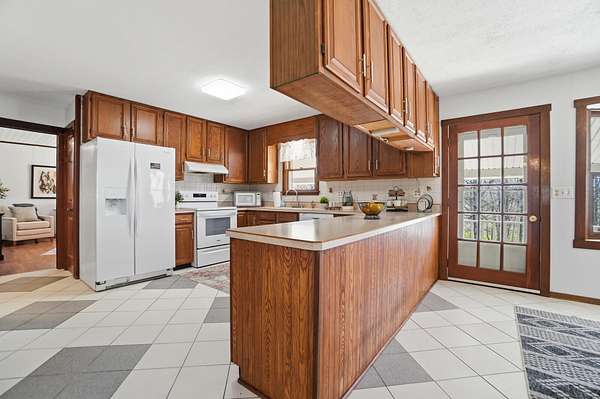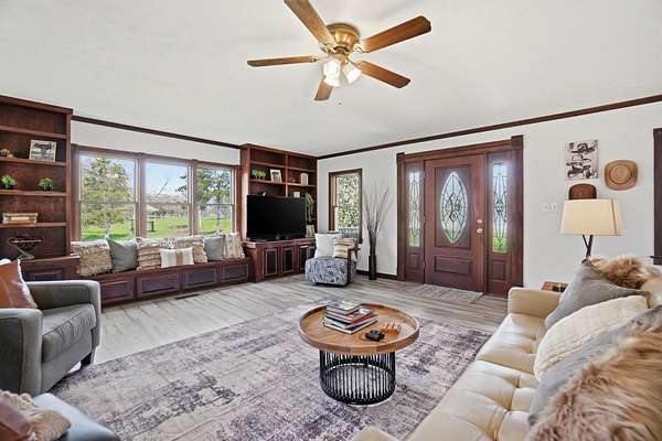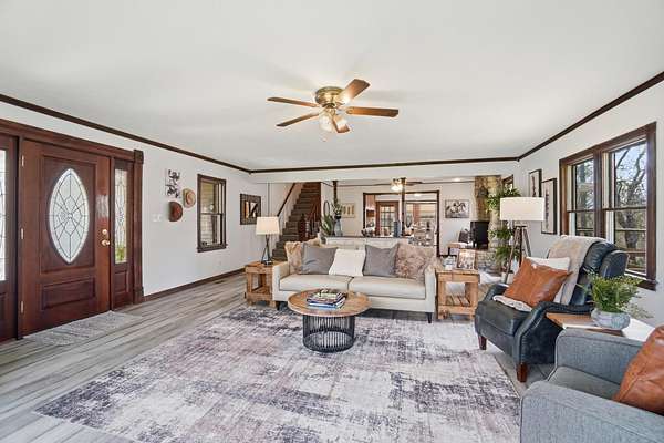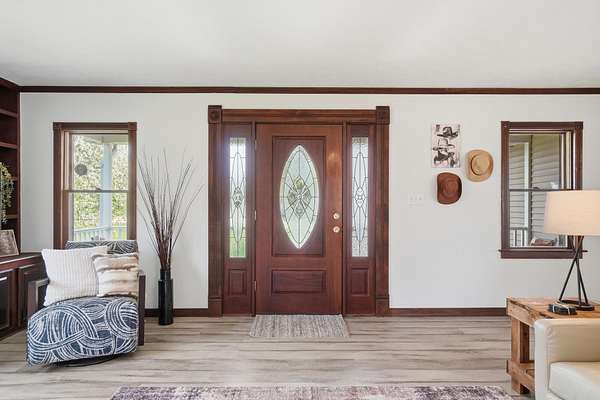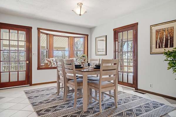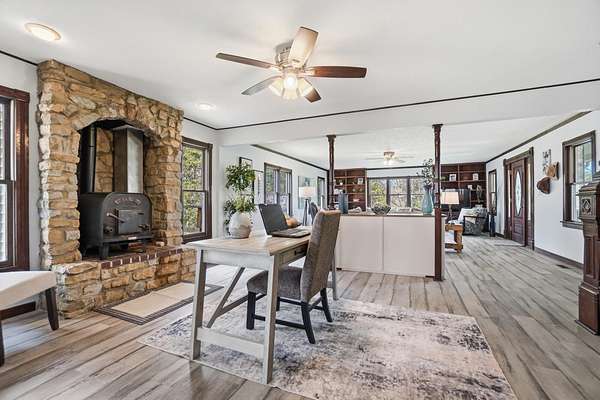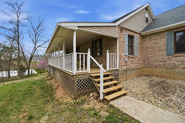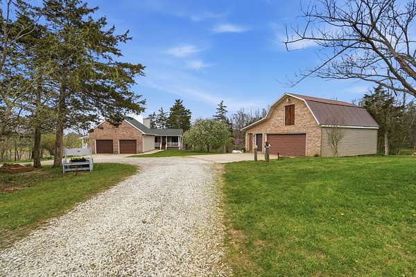 Discover an exceptional country retreat offering privacy and peaceful living. This cherished generational property, built by the seller, now awaits its new owner, presenting a rare opportunity to embrace a lifestyle surrounded by nature's beauty. With over seven acres of rolling hills, pasture, woods, a creek, fruit trees, and beautiful yard this residence provides ample space for tending a mini-farm, cultivating a vibrant garden, or pursuing hobbies for an auto enthusiast. The home features a generously sized living area complete with built-in bookshelves, creating a cozy, inviting atmosphere. Enjoy picturesque views from every window, connecting the indoors with the serene outdoor landscape. The interior boasts some new flooring, an open office space, a functional kitchen, and an adjoining dining room perfect for gatherings. A convenient main-level bedroom and a full bathroom offer comfortable living, complemented by a large laundry and mud room. Upstairs, two additional bedrooms and a half bathroom provide private accommodations, along with a spacious walk-in attic for storage needs. The basement, featuring a full bathroom and walk-out access, offers versatile possibilities for customization. Outdoors, a welcoming partial walk around deck and a charming front porch provide ideal spots to relax, listen to the birds, and soak in the tranquil surroundings. Further enhancing the property are a 30x30 detached two-car garage with walk-up storage and a dedicated workshop, plus a substantial 50x60 outbuilding with 220 amp service, previously a mechanics garage, easily adaptable to various uses, and a shelter for entertaining, grilling, and creating new memories. This remarkable estate promises an ideal lifestyle amidst beautiful scenery. Updates and inclusions: new roof, new LVP flooring and carpet, windows upstairs, sump pump added, fresh gravel drive in 2025. Updated features in main and basement bathrooms in 2026. 500 gallon Diesel tank/pump near detached garage.
