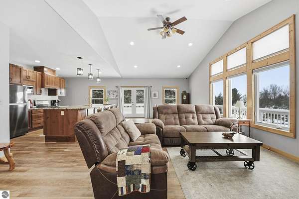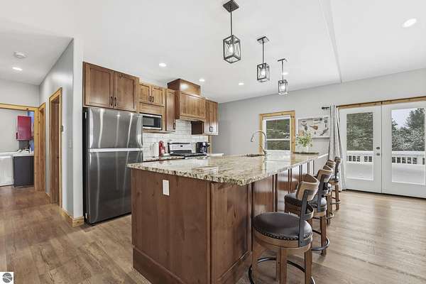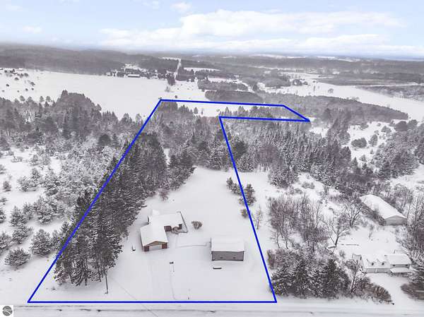 Beautiful acreage featuring a well-maintained home with an attached 30x41 garage, plus a spacious 40x40 pole barn. Inside you'll find a renovated kitchen with stunning 11' granite island, abundant cabinetry, walk-in pantry, and roomy dining area that leads out to the wrap around deck. Open concept, vauled ceilings, high performance wood-look flooring, and dedicated laundry/mud room off the garage. The walkout basement has a finished bedroom and bathroom, a large utility/storage area plus space to create an family room, office, home gym, or hobby space. Evergy-efficient heat pump system for heating and cooling. New maintenance-free vinyl siding and windows. The oversized garage is sure to impress and includes work bench, cabinets, and refrigerator but if more space is needed, there is the exceptional quality built pole barn with heated and cold storage. A short drive to Lake Bellaire, Torch Lake, and the welcoming towns of Alden, Bellaire, and Mancelona. This property offers so much while still giving you the opportunity to make it uniquely yours. Sold with generator, lawnmower, some furnishings and more.