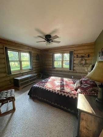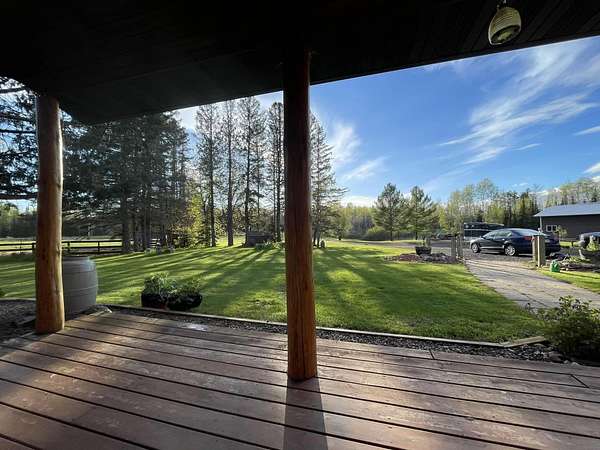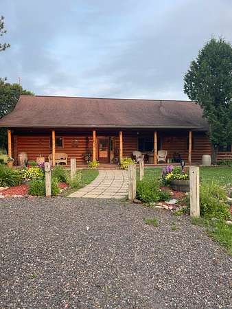 For those with equestrian interests this home is nestled in a serene setting, 8 miles north of Iron River. This exquisite rustic home exemplifies the rustic charm with modern comforts. You will fall in love with this 2,100 sqf. ranch style log home with in-floor Geothermal heat, spacious foyer with tiled flooring and plenty of closet space. A beautiful office space with rustic shelving and a large window to let in the natural sunlight. The living room has a beautiful, vaulted ceiling with an open floor plan, expansive picturesque windows viewing the panoramic landscape. The eat in kitchen continues with the rustic woodwork, complete with dishwasher, microwave, refrigerator, appliance garage, and pantry. Master bedroom has a walk-in closet 3/4 bath, private patio door to a private patio. The other 2 bedrooms are located on the other side of the home with their own closets, beautiful full windows, and 1 full bathroom. You will not be able to get enough of the outdoor space that offers 2 patios, an impressive fire pit, and a covered porch to enjoy. This property also includes a 30x72 shop/barn. The front has a 30x42 heated shop with a 12ft door and utility room, this also connects a 30x30 barn complete with 4 stalls, a tack room and a lean to off the back. There are 2 winter pastures accessible from the barn. You will also have an 80x120 outdoor arena plus 5 rotating summer pastures of 39 acres. If you like to play in the woods in the Chequamegon-Nicolet National Forrest is just down the road. This property is only 8 miles from the sandy shores of Lake Superior and nearby marina. Iron river also hosts many lakes to for water activities & fishing. This property is a must see don't miss your chance for country living.