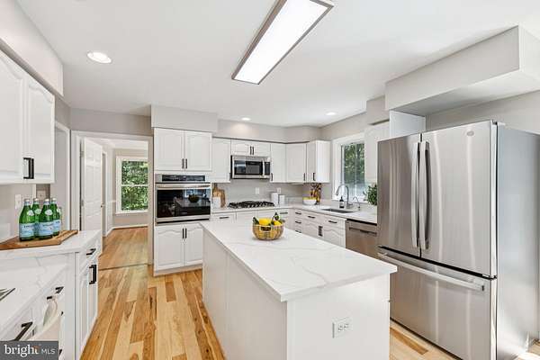 Secluded 4 bed, 3.5 bath, 2-car garage colonial situated at the end of a cul-de-sac on 2.86 wooded acres in Mallard Landing. Fenced rear yard with trex deck, stone paver patio w/ built-in grill, 3-door shed, and custom wrought iron gate. Renovated kitchen with new appliances, quartz countertops, gas cooking, walk-in pantry, and ample cabinet space. Refinished hardwood floors on the main level with wood burning fireplace, laundry room, and half bath. New carpet on the upper level with updated light fixtures. Primary ensuite has sitting room, walk-in closet, vaulted ceilings, walk-in shower, jetted tub, and side loading attic storage space. Three additional bedrooms on the upper level with a full bathroom. Lower level rear walkout has new vinyl flooring, full bathroom, shadow shelving, and unfinished storage space. Tankless water heater 2022. Architectural shingle roof 2023 (w/ transferable warranty). HVAC 2018.