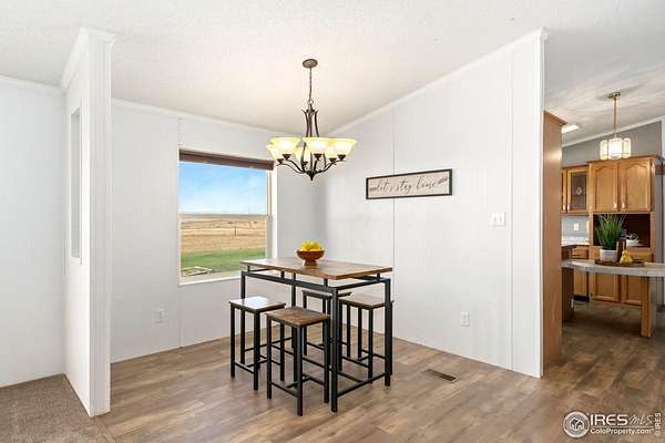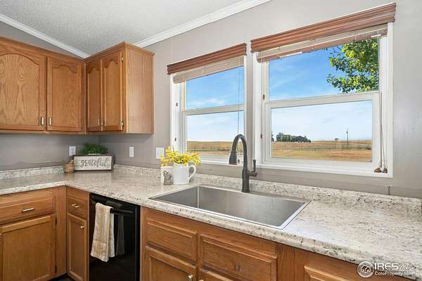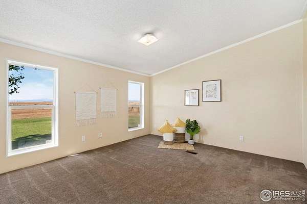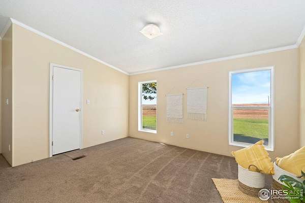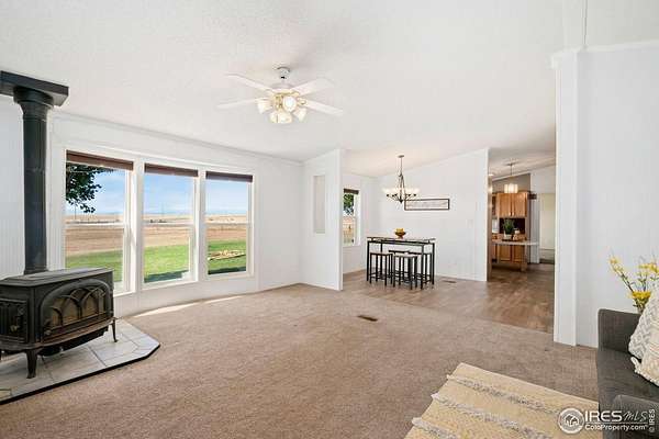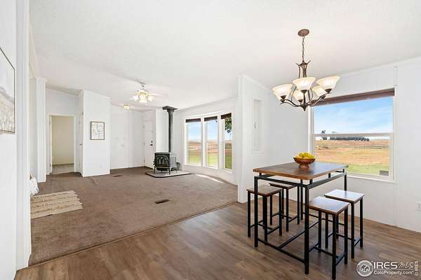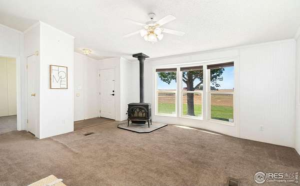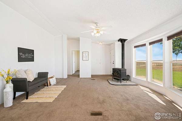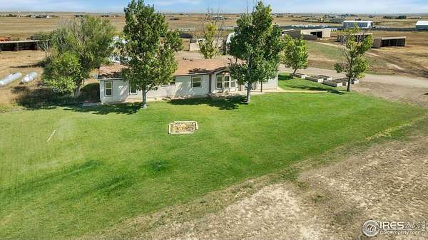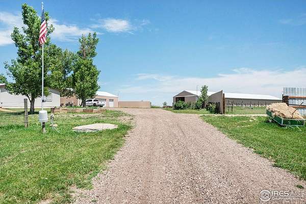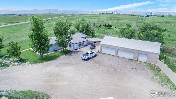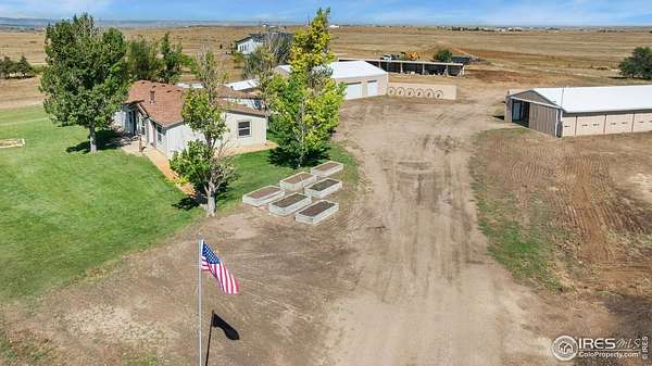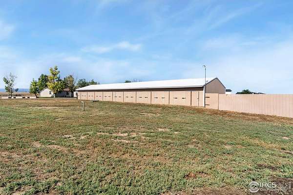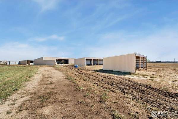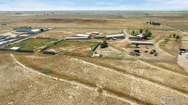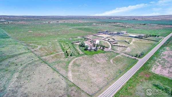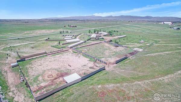 Ideal property for livestock or agricultural business. 60 acres located directly off of a paved road with easy access to I-25 and close proximity to Wellington or Nunn/Hwy 85 with beautiful mountain & plains views. The extensive outbuildings include an attached 1920 square foot 5 bay garage. The 120x26 barn can work for large animals or is immediately ready with 10 small livestock stalls, hot and cold running water, and small enclosed utility/tack room. The 90x12 lean-to can house small equipment or hay. Additional livestock buildings include a 72x28 building and two 40x20 lean-tos. Two large feeding paddocks with concrete feeders, one with a 30x19 lean to. Multiple automatic waterers and frost free hydrants. Pasture is fully fenced with a four strand barbed wire. Some fencing is needed in the paddock areas and around the buildings to welcome the herd, but the framework is there for a successful livestock operation. The spacious ranch style home with 4 bedrooms & 3 baths includes a cozy wood burning fireplace, an eat-in kitchen + a dining area and a large attached breezeway to the attached garage. The acreage would qualify for a Family Farm Division for an extra building site for family (Buyer to verify). Buyer to verify well use for intended livestock. Some of the photos included are from 2019.