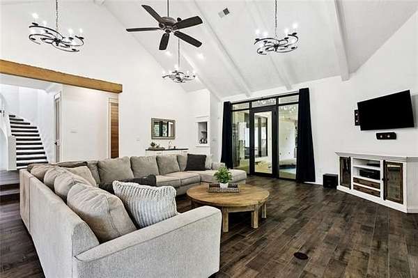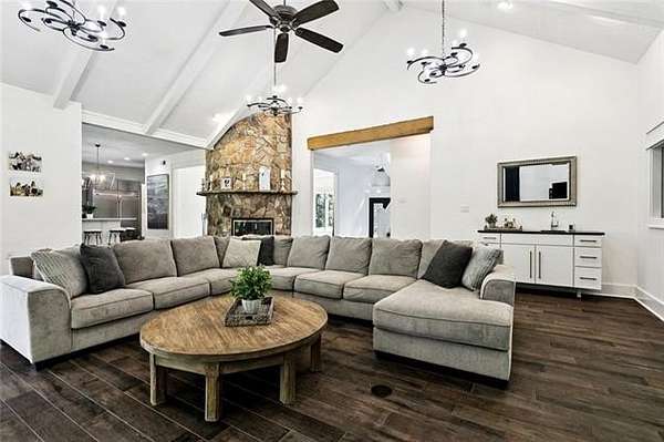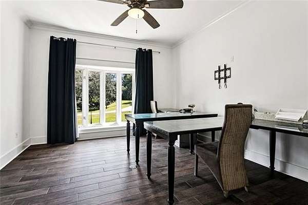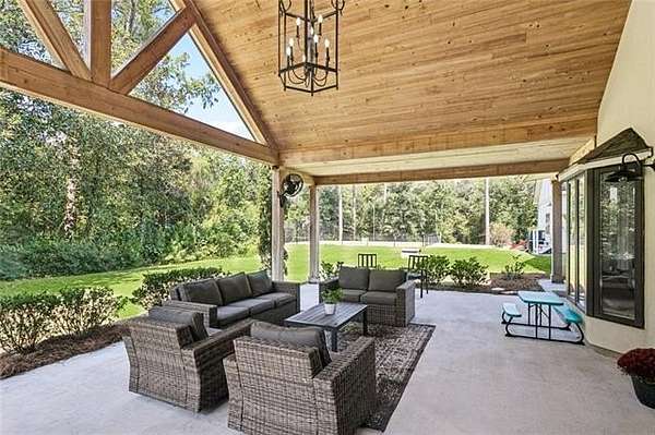 This 9.46 acre estate is nestled on the white sands of the Bogue Falaya River, features a covered swimming pool, pickleball court, and is only minutes from the Downtown Covington retail and entertaining corridor. The quintessential "Modern Farmhouse" interior begins with a two-story foyer that opens to the spacious living room and kitchen, both with large windows that offer beautiful views of the surrounding acreage. The first floor also features the master suite, an office, full bath and mud room. The second floor is home to three bedrooms, two baths, several walk-in bonus and storage rooms, and a 1350+ sf entertaining room currently used for billiards and a home theater. The gorgeous grounds of this enviable "River Road" address feature a large pond, winding driveway, pickleball court, covered swimming pool, a two-story ancillary building and direct access to the Bogue Falaya River.