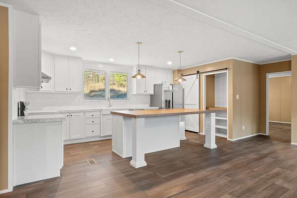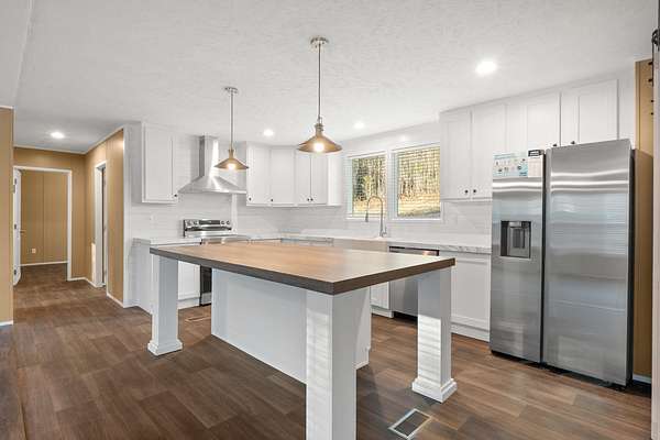 Discover your dream home at 756 Bowman Rd in Ringgold Ga! Take a drive up the concrete drive way to this stunning new farmhouse-style residence on 1.98 acres in a serene rural setting. The open floor plan features a split bedroom design for enhanced privacy and comfort. The expansive kitchen is a chef's dream, boasting new appliances, a kitchen island, breakfast bar, coffee bar, and a shelved pantry with a charming barn door. The combined living and dining area is perfect for entertaining. Relax in the spacious master suite, which includes an en-suite bathroom with a dual vanity and walk-in shower. A large laundry room adds to the convenience. Enjoy the tranquility and elegance of this exceptional property from the comfort of your front and rear decks. Don't wait and schedule your showing today