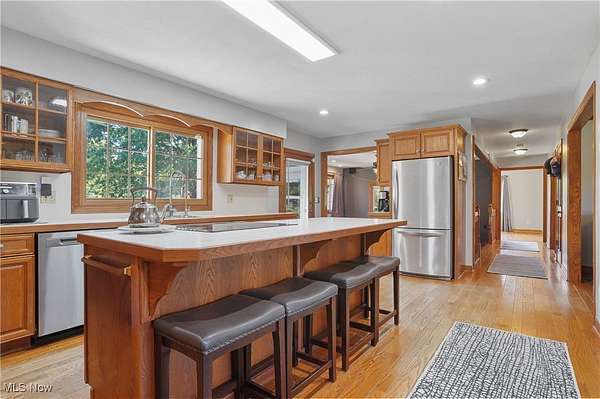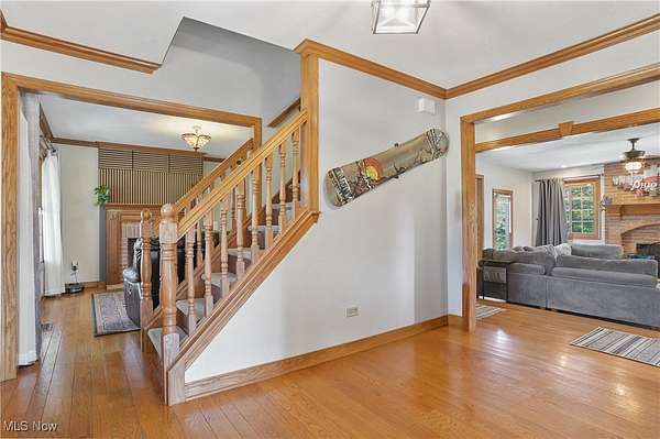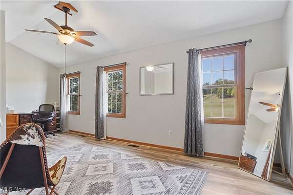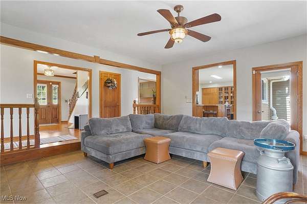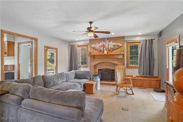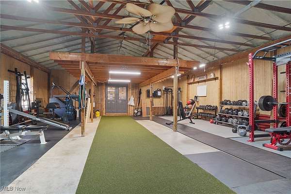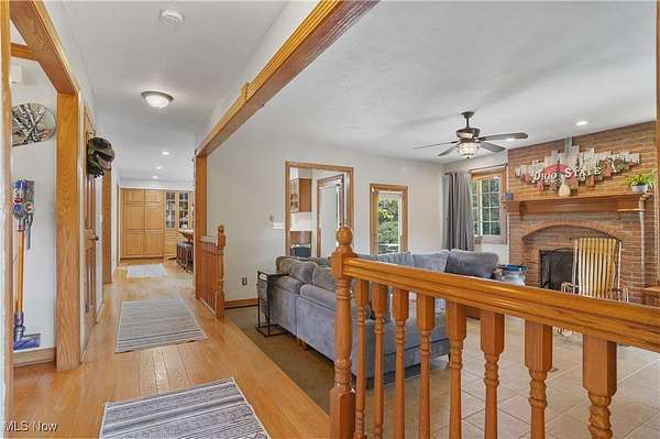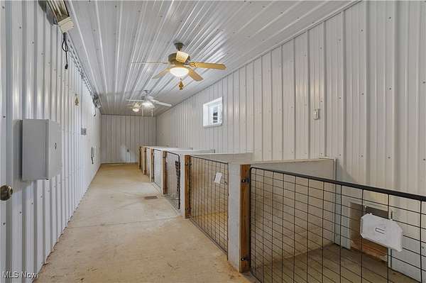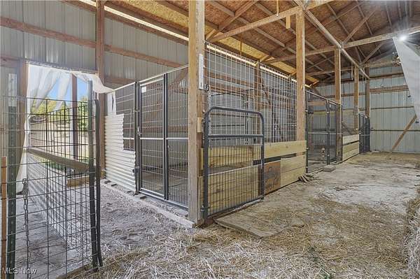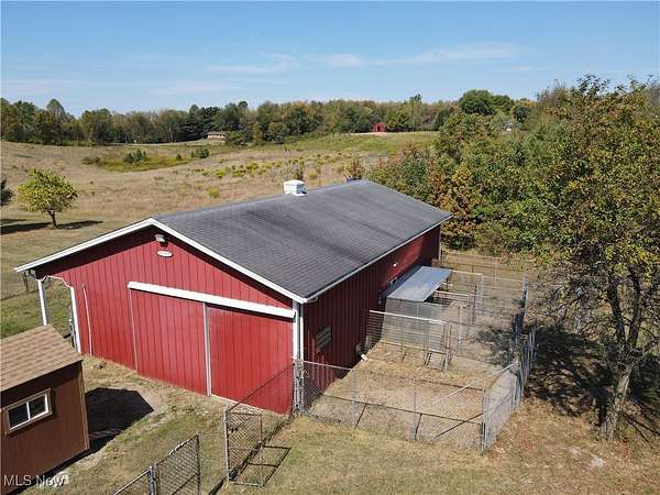 The moment you turn into the driveway, the sweeping view of this 15.49-acre property with a 3 bed, 3 full bath home and 7.5-car garage takes your breath away. Set well off the road for unmatched privacy, the home and outbuildings are surrounded by beautiful land with private wooded trails for exploring, walking, or riding. Immaculately maintained, the home features a 2.5-car attached garage, wood floors on the main level, a large mud/laundry room with full bath, fireplaces in both the dining and family rooms, and a kitchen with stainless appliances, island seating, and recessed LED lighting. Dual patio doors open to outdoor living spaces and a fenced yard. Upstairs, the primary suite offers a walk-in closet and additional shelved closet. Two more large bedrooms feature walk-in closets with built-ins. A full hallway bath and extra storage complete the upper level. The walk-out basement-with separate entrance, bonus room, oversized rec room, and ample storage-adds great flexibility. Major updates: siding (2020), windows (2016), HVAC (2022) with thermostat (2024), washer/dryer (2023), dishwasher (2025), disposal (2022), bathroom vanities (2022 & 2025), toilet (2023), fans (2021), water pressure tank (2025), whole-property water filtration (2021), radon mitigation (2021), septic (pumped 2024), and interior painting (2021-2025). Outbuildings include a 30x50 barn with hayloft and an insulated/heated 6 run dog kennel (within a fenced acre) with frost-free hydrant; a 5-car insulated steel garage & loft area with heat, A/C, spray foam insulation, insulated doors,(2022) and nearby frost-free hydrant (currently a gym); a refreshed large she shed (exterior updated, painted before transfer); and an 8x8 shed (2022), previously for goats. With pond potential, abundant storage, and meticulous care throughout, this is private country living at its finest.