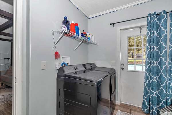 EXTERIOR FEATURES: 2 New Paved Driveways - 2024 Roof -Newly upgraded & reinforced spacious wooden deck - Beautiful Stone work - Fully fenced with 2 gates - Zoned for horses & other farm animals ----Massive 30x50 metal building with 3 roll up doors & concrete slab floor -Additional Storage Shed--2024 Above Ground Pool (negotiable) - 2 Concrete driveways 4.37 acres with NO HOA - NO RESTRICTIONS- NO FLOOD ZONE