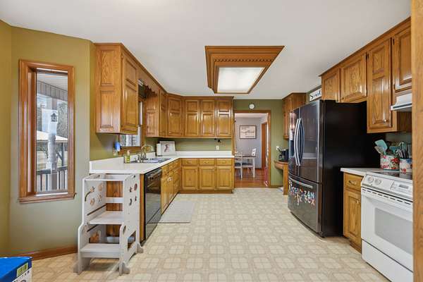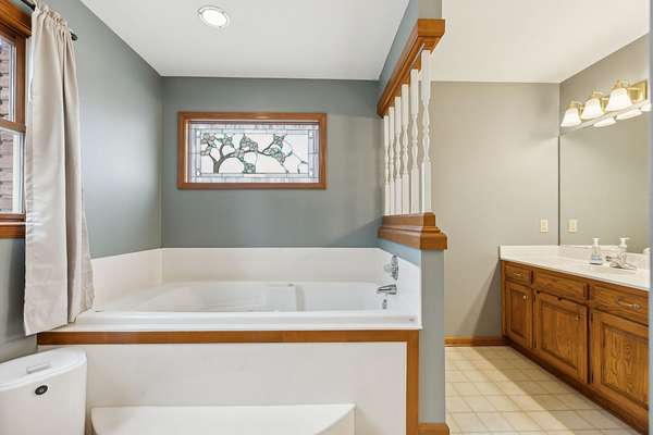 Separate apartment/in-law suite, above garage, ideal for extended family, guests or income producing opportunities. With its own central unit.