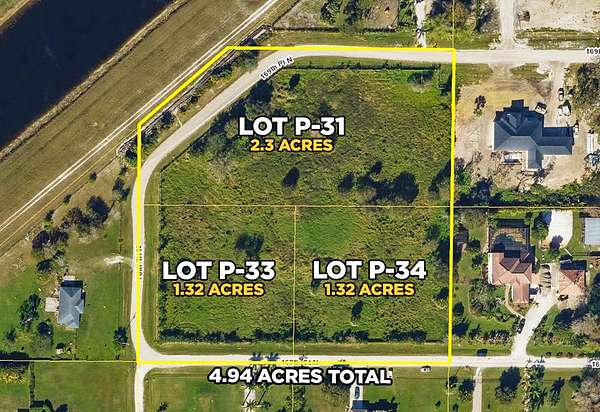 OWNER FINANCING AVAILABLE. Extremely rare opportunity to own a 4.94-acre compound in this part of Palm Beach County. This beautiful cleared, fenced, and partially-filled assemblage of three lots (improvements valued at over $70,000) is located in one of the most secluded areas of Palm Beach Country Estates. This compound is made up of three separately-deeded parcels: one 2.3-acre lot and two 1.32-acre lots - allowing for three separate single-family homes in addition to multiple accessory dwellings. The C-18 canal is just steps away. Owner will consider selling the individual parcels separately. Palm Beach Country Estates has municipal water available for hookup, no HOA restrictions, and is located just down the street from Abacoa and Alton Town Center.