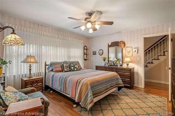Set on a 2.08-acre lot with approximately 200 feet of frontage, the property is framed by mature landscaping and breathtaking 200-year-old oak trees, creating a setting that truly feels like country living in the city. The grounds feature perennial flower beds, flowering trees, and a raised-bed garden, offering a peaceful and picturesque environment.