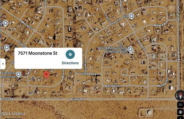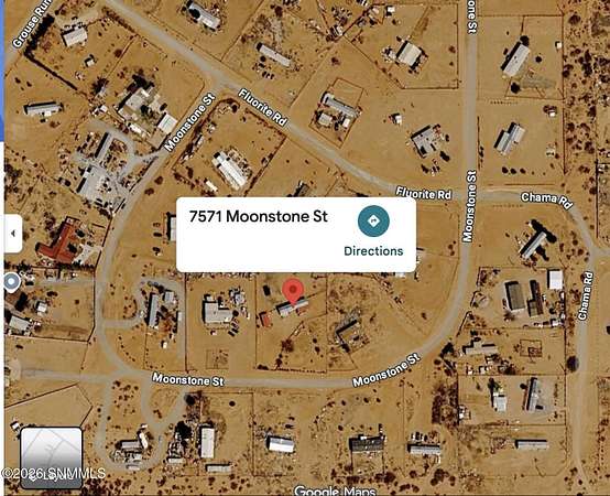HWY 70 E exit HOLMAN/DUNN. North to ARROYO, West to CHAMA, dirt road from there. Chama turns west to Moonstone, LEFT on Moonstone, curves right. 7571 Moonstone see sign.