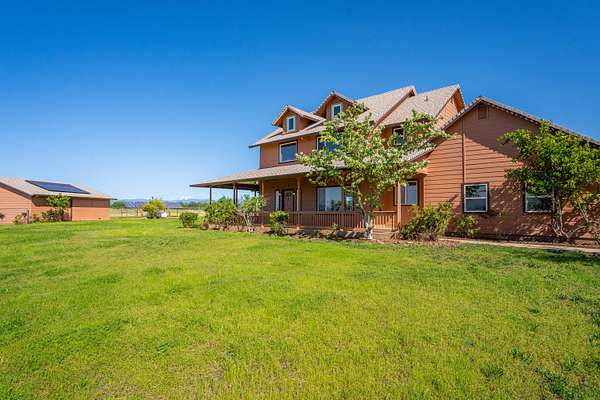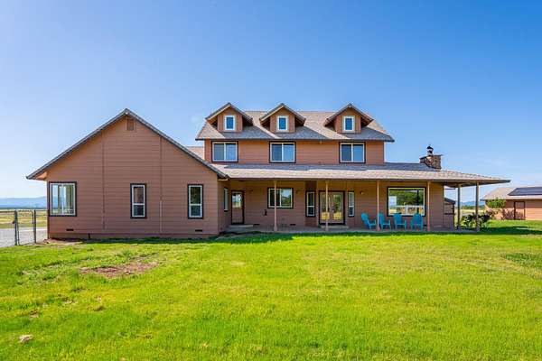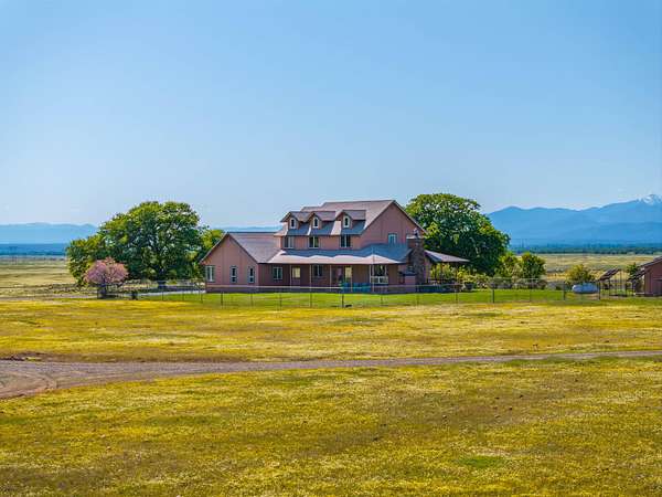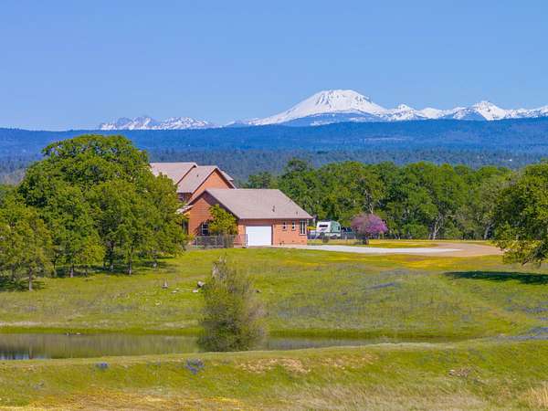 Country living at its best! This private retreat is nestled on 350 acres with over a mile of Bear Creek frontage. The property features a 2,534 sqft. custom home with 4 bedrooms and 2.5 baths. The main level boasts a great room with a stone fireplace, large kitchen, living room, and primary suite. Upstairs you will find 3 additional bedrooms with one bedroom serving as a potential second primary suite. This home has new carpet, paint, refinished wood floors, and updated fixtures throughout. Outdoor features include a new roof, owned solar, and an outbuilding for all of your toys. Enjoy breathtaking views of both Mt. Lassen and Mt. Shasta from the wraparound porch overlooking the pond. This is a rare opportunity to own this unique property, perfect for ranching, recreation, or an exclusive private getaway. Conveniently located just 8 miles from grocery stores and essential amenities. Don't miss the chance to make this extraordinary property your own.