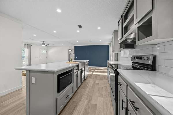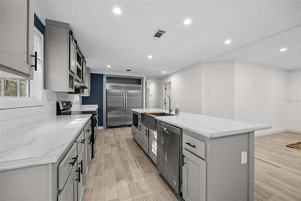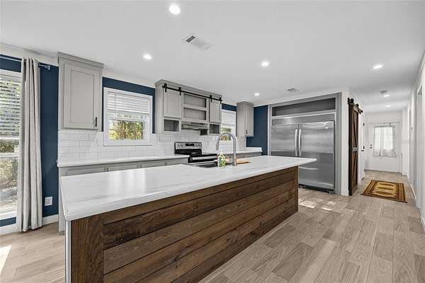 Move right in and enjoy the new home smell of this immaculate 2024 manufactured home on 2 acres (two attached lots sold as one) in Keystone Heights! This 1,560 sq ft, 3-bed, 2.5-bath home boasts high ceilings, beautiful vinyl flooring throughout, and a highly functional split bedroom plan featuring a welcoming great room at its heart. Culinary dreams come alive in the island kitchen, equipped with stainless steel appliances, including a huge side-by-side refrigerator. The primary suite is a true retreat, privately situated off the living room and offering a deep walk-in closet, plus an ensuite bath with double sinks, a relaxing bathtub, and a separate glass-enclosed walk-in shower. The two guest bedrooms share a convenient Jack and Jill bathroom with double sinks and a tub/shower combination, while additional storage includes a walk-in storage closet concealed by a distinctive barn door. Beyond the guest rooms are a back door, half bath, and laundry room outfitted with a washer and dryer. The expansive lot is already perimeter fenced, offering immediate privacy and security for family and pets. This generous space provides tremendous outdoor flexibility for various activities, future additions like a carport, workshop or pool, and currently features ready-to-use raised garden beds perfect for the home gardener. The laidback lifestyle of Keystone Heights offers the perfect blend of country charm and convenient recreation. You'll be just 3 miles from the crystal-clear shores of Lake Geneva, offering endless opportunities for swimming, boating, and enjoying the outdoors. For even more adventure, the trailhead to the 47-mile Palatka-to-Lake Butler State Trail, perfect for hiking and biking, is only minutes away. When you're ready to explore town life, the charming historic town center is just 5 miles from your doorstep. Best of all, you're ideally situated: enjoy a quick 25-mile drive to vibrant Gainesville or an easy 57-mile trip to historic St. Augustine. Make this desirable Florida lifestyle yours, and book your private showing now before it's too late!