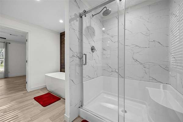 - Ceiling Fans(s), Eat-In Kitchen, High Ceilings, Kitchen/Family Room Combo, Open Floorplan, Primary Bedroom Main Floor, Solid Surface Counters, Split Bedroom, Thermostat, Walk-In Closet(s), Window Treatments