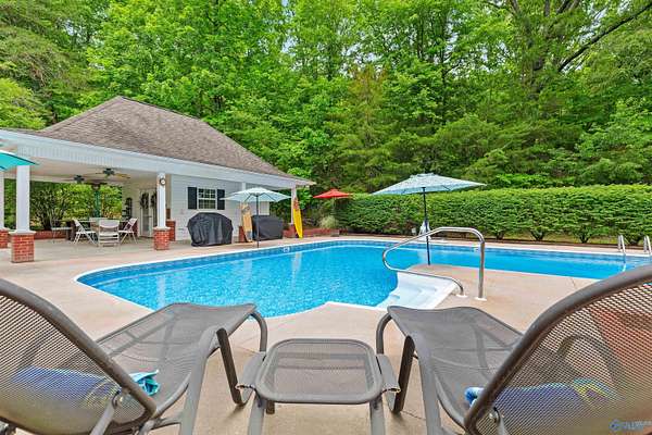 Situated on a 3.28 ACRE private lot, this ELEGANT 4 bed, 5 bath home is loaded with character. Step into the dramatic 2 story entry that showcases the dining room, den and living space with tons of natural light. Floor to ceiling windows, cozy FP, and NEW INTERIOR PAINT! Wonderful layout with 1st FLR PRIMARY BR and updated kitchen. Staircase has 2 entry points for ease to upstairs rooms (2 with OUTDOOR BALCONY access) and a LARGE FAMILY ROOM. THIRD LEVEL boasts a large BONUS area that could be a 5th bedroom/MEDIA room. Entertain with back patio/FP, POOL and POOL HOUSE with mini split! FEATURES:NEW 1st FLR AC, 2 LAUNDRY ROOMS, New Water line/Meter, Ionization Pool Pump, & Leaf Filter Gutters!