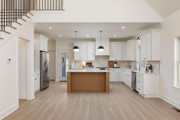- Ceiling Fan(s), Chandelier, Double Vanity, En Suite, High Ceilings, Kitchen Island, Open Floorplan, Pantry, Primary Downstairs, Separate Dining Room, Separate Shower, Vaulted Ceiling(s), Walk-In Closet(s)