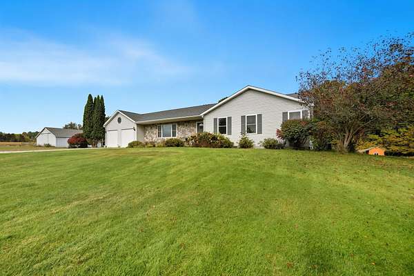 This expansive 5-bedroom, 3-bath home is perfect for a nature-loving family and offers the flexibility to purchase anywhere from 10 to 48 acres. The main level is designed for gatherings with a bright and open kitchen, dining area, and spacious living room filled with natural light. Three bedrooms are located on this level, including a massive primary suite featuring a walk-in closet and dream ensuite. A second full bathroom and a convenient main-floor laundry room complete the space. The finished basement welcomes you with a wide staircase leading to a large family room, two additional bedrooms, another full bathroom, and plenty of storage. Step out from the walkout basement to enjoy evenings by the fire pit and a sprawling yard perfect for kids, pets, or outdoor entertaining. This property offers excellent opportunities for hunting, farming, or raising livestock, complete with a small creek at the back of the land. A 2-stall garage and large 40x 52 pole barn provide ample *Video Tour in Listing*