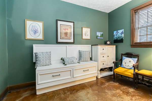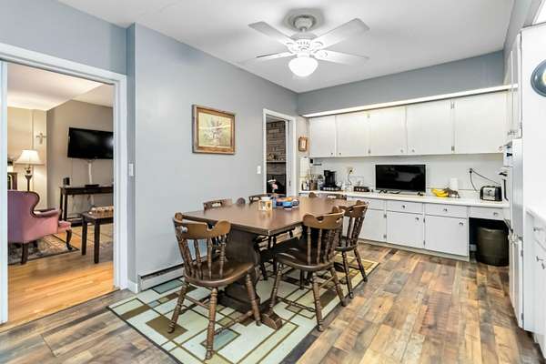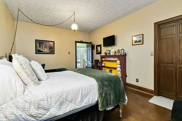 Step into timeless charm with this beautifully remodeled brick home, where historic character meets modern convenience! Situated on 5.1 scenic acres, this 4-bedroom, 2-bathroom home offers 2,774 sq. ft. of inviting living space-not your typical cookie-cutter home! As you arrive, you'll be captivated by the foyer entrance from gorgeous back patio, featuring lighted steps and custom concrete floors designed to look like elegant tile-a truly one-of-a-kind welcome! Inside, the warmth of hardwood floors, floating wood floors, and tile & concrete finishes complement the home's cozy aesthetic. The highlight of the living room is a gas fireplace filling the space with charm. The spacious eat-in kitchen is perfect for gathering, while the large laundry room adds everyday convenience. With electric baseboard heat and A/C window units, you'll stay comfortable year-round. Outdoors, this property truly shines! You'll find a detached 2-car garage with electricity, a 16' x 34' storage building, and a lean-to. Plus, with two septic tanks, a metal roof, and a peaceful pond & creek running through the land, this home is built to last. This is more than just a house-it is home!