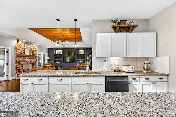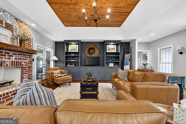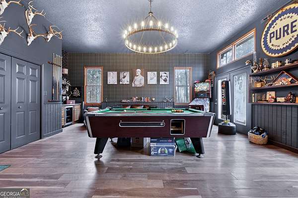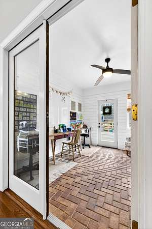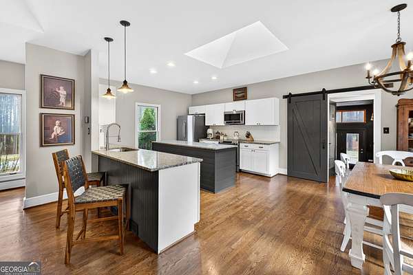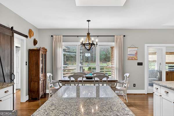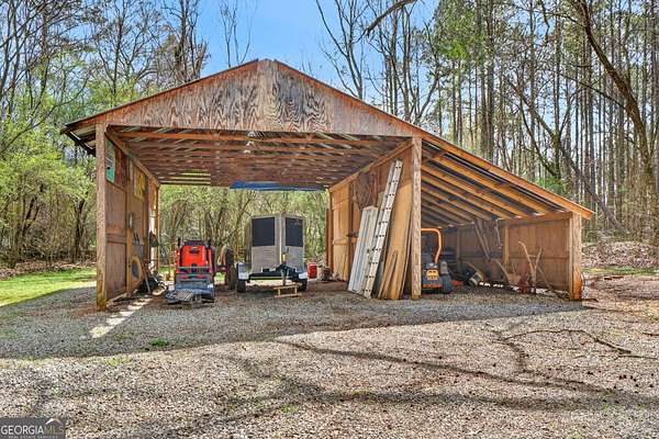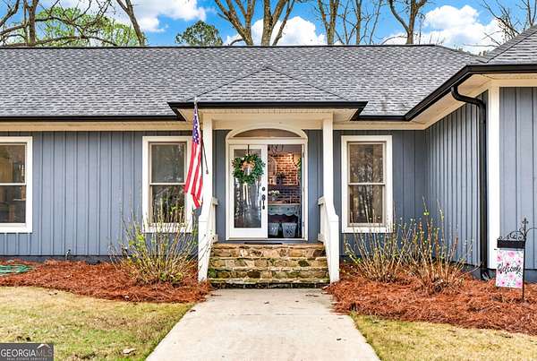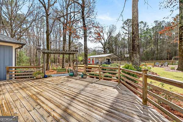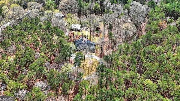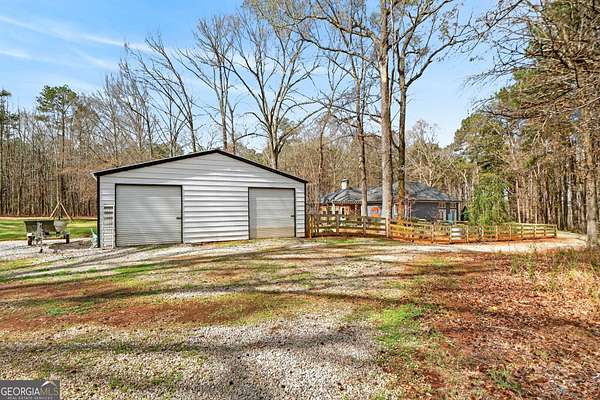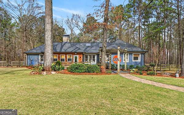 Welcome to Nature Lover's Paradise on 12 Acres with Double Road Frontage in Pike County. A long asphalt circular drive leads you to a beautifully updated ranch home featuring charming cedar board-and-batten exterior accents that add warmth, character, and exceptional curb appeal. This exquisite one-level home welcomes you through charming French doors into a stunning great room featuring a wood tray ceiling, cozy brick fireplace, and striking rich blue built-in cabinetry that adds both character and sophistication to the living space. The thoughtfully updated kitchen and dining area offer a warm and inviting place to gather, featuring granite countertops, tile backsplash, and a large kitchen island with space for additional cabinetry beneath for extra storage. A powder room for guests adds convenience for entertaining. The heated and cooled sunroom provides year-round enjoyment and opens to the expansive back deck - perfect for entertaining or relaxing while enjoying the peaceful views of the property. The owner's suite features direct access to the back deck, creating a serene retreat with is private sitting area. The ensuite has been recently renovated with a beautiful tile shower and double vanities. Two spacious secondary bedrooms share a completely remodeled Jack-and-Jill bathroom. The enclosed garage has been transformed into a heated and cooled flex space with a wet bar, ideal as a secondary living area, recreation room, or game room. Outdoor living is exceptional with a large back deck, pergola, fire pit, slate stone sitting areas and pathways, raised flower beds, a tree house, and a putting green, all surrounded by mature professional landscaping and stunning Japanese maple trees - truly a nature lover's dream. Additional features include: Detached two-car garage/workshop with three roll-up doors and covered overhang porch. Secondary barn with lean-to and ample height for RV or boat storage. Newer HVAC system with ductwork, roof, and gutters. Whole-house water filtration system and more! Come experience this private retreat, nature's paradise is waiting for You!