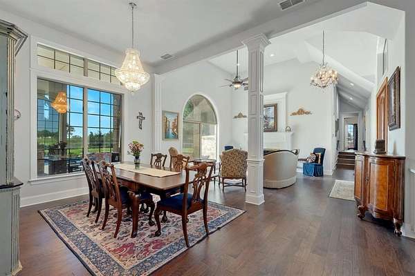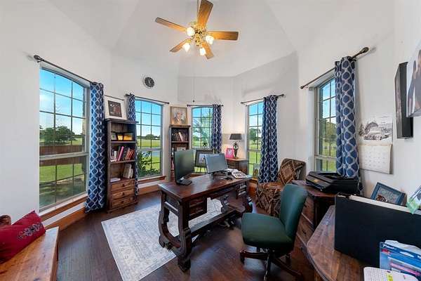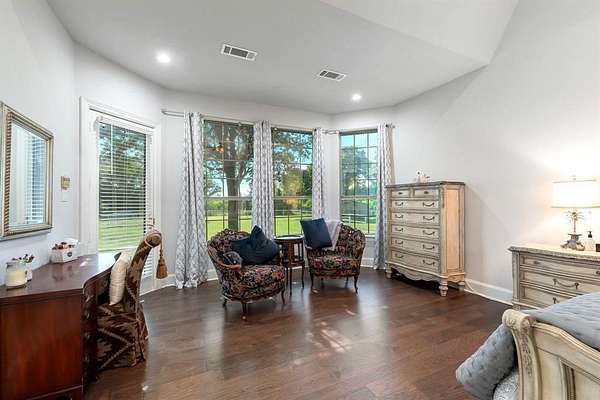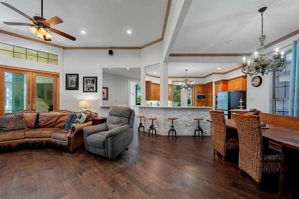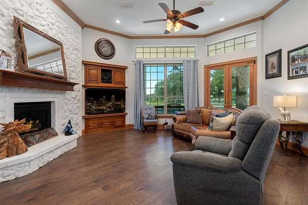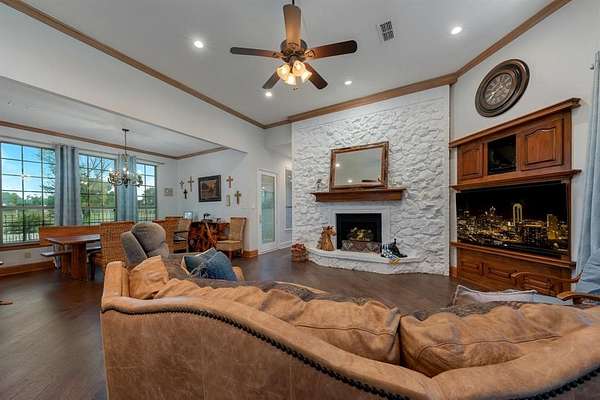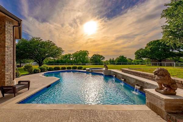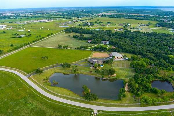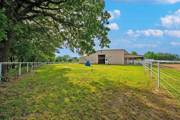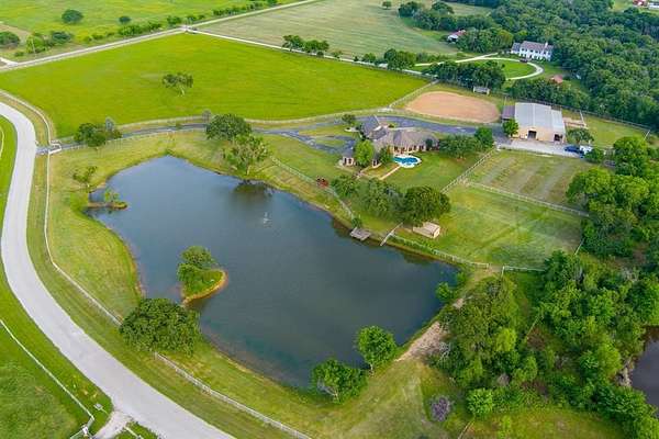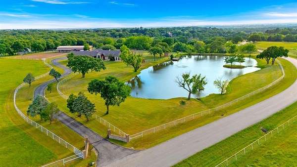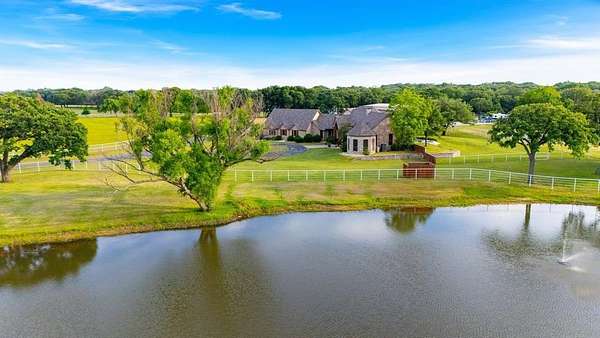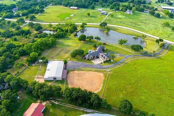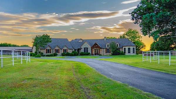 Set on approximately 14.5 acres in the heart of North Texas horse country, this gated estate offers a well-rounded combination of a spacious residence, equestrian improvements, and a location that keeps you connected to the broader DFW area. Positioned just minutes from Denton with convenient access to major thoroughfares, the property provides a rural setting without sacrificing proximity to shopping, dining, healthcare, and both DFW International and Dallas Love Field airports. The residence offers approximately 4,400+ square feet of thoughtfully designed living space, up to five bedrooms, featuring a split-bedroom layout that balances privacy and separation. Multiple living and dining areas offer flexibility for a range of uses. The kitchen is equipped with double ovens, gas cooking, and ample workspace, while the private primary suite includes a sitting area and an adjoining office. An upstairs bonus suite adds additional flexibility for guests, extended family, or a variety of personal uses. Additional features such as a pool, outdoor living areas, and a generator contribute to its overall functionality and comfort. Outdoors, the land is defined by mature trees, pasture, and a private pond supported by a private water well, creating a natural backdrop that enhances the scenic acreage setting. The sandy loam soil, highly regarded for equestrian use, makes the property especially appealing for horse enthusiasts. Equestrian improvements include a well-designed insulated barn with up to 12 stalls, tack and feed areas, wash rack, and a flex-room with kitchenette and full bath, along with fenced pastures and supporting infrastructure. With its combination of a luxury home, usable acreage, equestrian amenities, and a convenient location near Denton and the surrounding DFW conveniences, 7583 Mountain View presents a well-balanced opportunity in one of the area’s most desirable acreage settings.