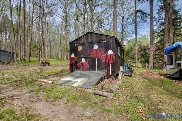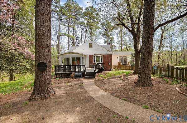 Live, Explore, and Enjoy this 6.8 acre wooded oasis off Bell Creek Road! Next door to Sandy's Plants, minutes from shopping, dining, medical offices, Mechanicsville High School, and I-295, as well as 15 minutes to Church Hill, Downtown Richmond and the quickly growing Northside of Richmond. Circular drive with large private front yard leads to a beautiful 4 bedroom (that could also function as a 5 bedroom) Brick Cape Cod w/ large addition family room (that current owner utilizes as a huge primary bedroom). Big family room with high ceilings and exposed brick leads to living room with hardwoods and wood burning fireplace. TWO Main level bedrooms with a full bath also on main level. Two additional bedrooms and full bath upstairs with skylights and big closets. Over 1,000 square foot basement with interior access and walkout ability, with plenty of storage, laundry, utility, a half bath, and large freshly painted bonus room/rec area. Beautiful Florida room flush with natural light leads to open rear deck and acres of garden and woods. Rear masonry shed with chicken coop, additional custom hand painted storage shed, large detached garage structure, covered grilling/smoker area with fire pit, picnic tables, and manicured paths throughout the property lead to clearings perfect for camping, activities, and even future AUD or home sites. Trail throughout property makes a big loop leading to pond views as well as direct access to a serene creek in your very own backyard. Great potential for a family compound. Cannot beat this location in Hanover. Truly a rare double parcel with move-in ready home less than 5 minutes from 295.