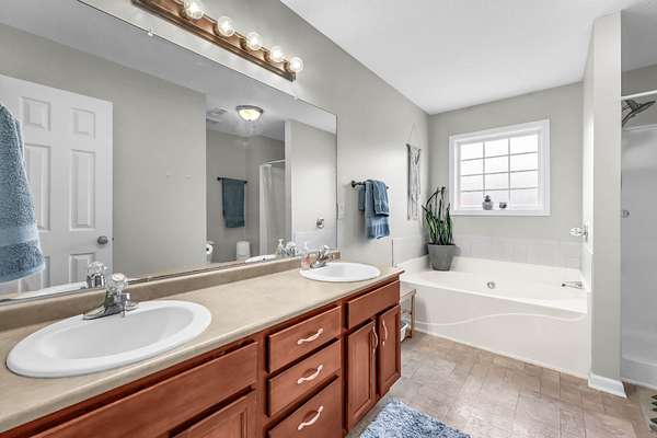The primary suite is designed for comfort, offering a walk-in closet and a bath with double vanities, a separate tub, and shower. Upstairs, you’ll also find two additional spacious bedrooms along with a versatile bonus room—perfect for a home office, playroom, or additional living space.