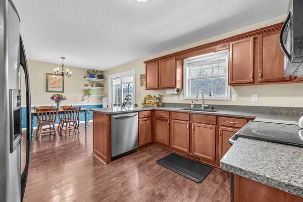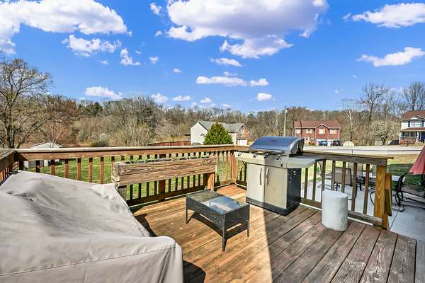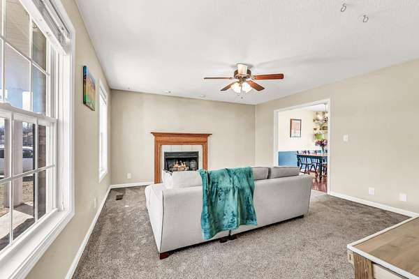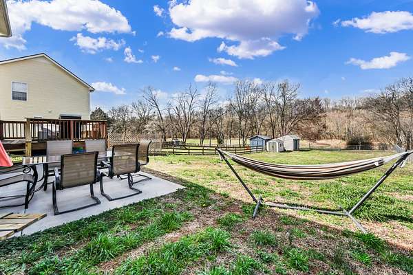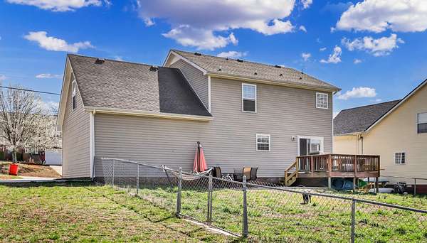 The greatroom welcomes you with a cozy fireplace, creating the perfect gathering space for relaxing evenings or entertaining guests. The country kitchen is both functional and inviting, featuring a breakfast bar, all appliances, and an easy flow into the dining area. From here, step outside to the deck and patio—ideal for outdoor dining, weekend cookouts, or simply enjoying the expansive backyard.