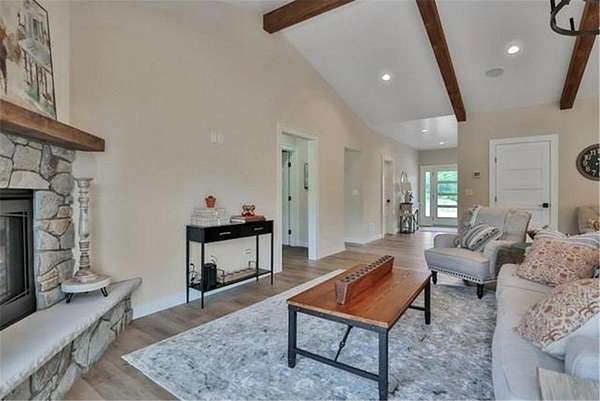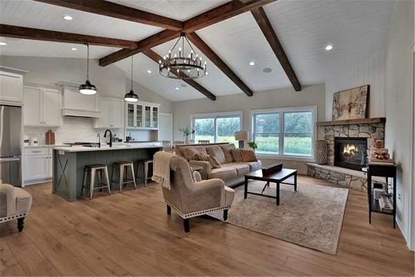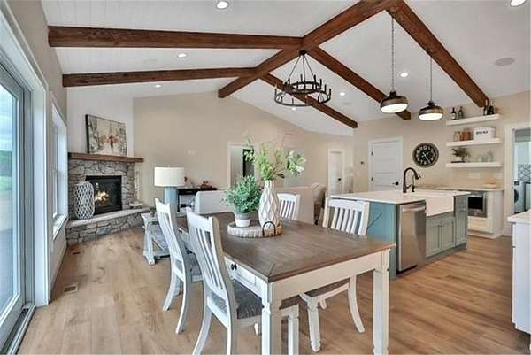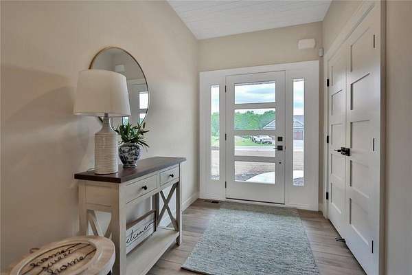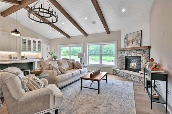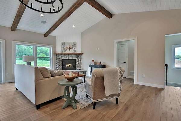 Welcome to the Preserve at Comfort Lake and your gorgeous new home! This one level property checks all the boxes! Sequestered off the western shores of Comfort Lake sits this tranquil 19 lot acreage development featuring a perfect blend of scenic natural open space and beautiful wooded spaces. The thoughtfully crafted Farm model home, on almost two acres, shows pride and craftsmanship by Judge Homes at every turn, from the heavy reclaimed beam accents to the nickel spaced shiplap vaulted ceiling offering a warm, comfortable open concept floor plan. You'll enjoy the gourmet kitchen with custom cabinets and built-in features, ample quartz counters, stainless steel appliances, and a large center island with ceramic farm sink. A spacious pantry tucked behind a gorgeous barn door, is within reach as you prepare your favorite meals. You will love the large primary bedroom and bright en-suite bath-with separate shower, custom tile, soaking tub and crisp clean accents that sparkle. There are two other spacious bedrooms with a full and half bath all conveniently located on the main level. This is one level living at its finest! The entire basement is ready to finish to your specifications and you can add another bedroom and office if desired. NEED MORE SPACE? Ask about finishing the basement before closing! The Preserve at Comfort Lake allows outbuildings and No ASSOCIATION FEES! Lake access living without the high lake front taxes. 30 min North of the Twin Cities. Other lots available to build your FULLY CUSTOM HOME. Ranging from 1-5 acres in size and different scenery options, we are sure to have a lot perfect for YOU! Most of the furniture is available for purchase as well!