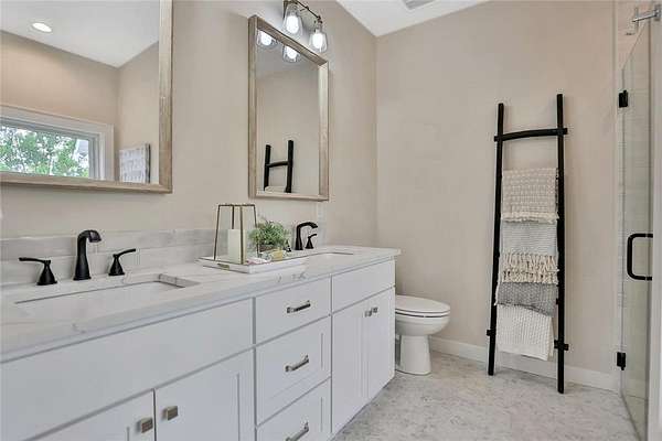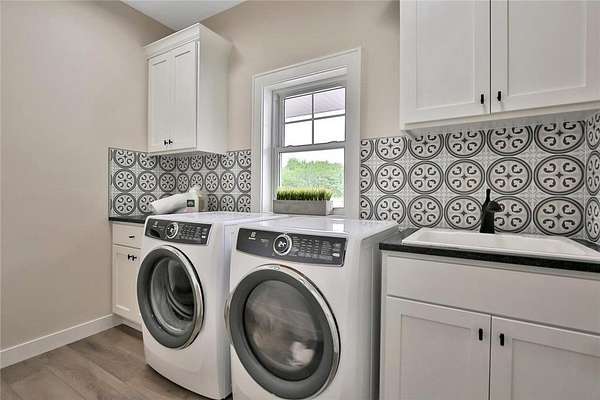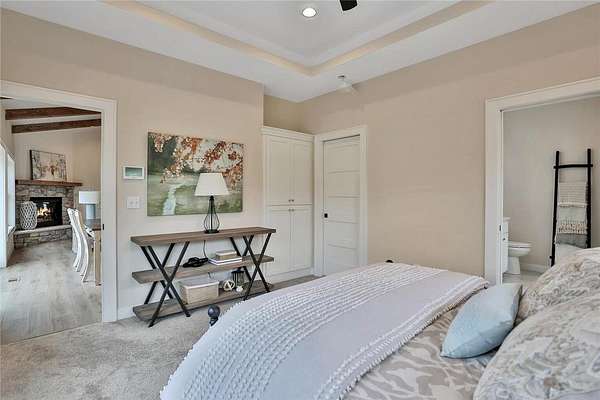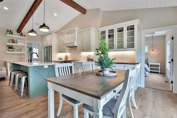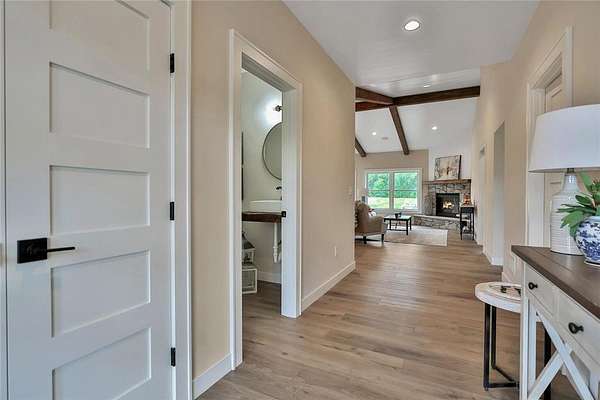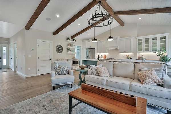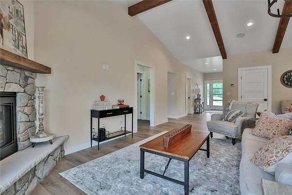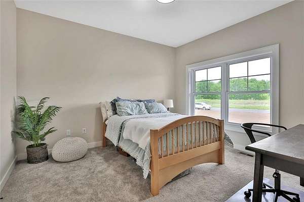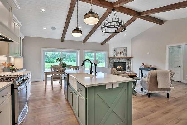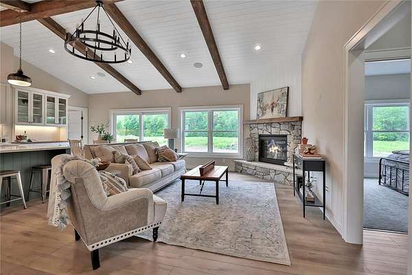 Welcome to the Preserve at Comfort Lake and your gorgeous new home! This one level property checks all the boxes! Sequestered off the western shores of Comfort Lake sits this tranquil 19 lot acreage development featuring a perfect blend of scenic natural open space and beautiful wooded spaces. The thoughtfully crafted Farm model home, on almost two acres, shows pride and craftsmanship by Judge Homes at every turn, from the heavy reclaimed beam accents to the nickel spaced shiplap vaulted ceiling offering a warm, comfortable open concept floor plan. You'll enjoy the gourmet kitchen with custom cabinets and built-in features, ample quartz counters, stainless steel appliances, and a large center island with ceramic farm sink. A spacious pantry tucked behind a gorgeous barn door, is within reach as you prepare your favorite meals. You will love the large primary bedroom and bright en-suite bath-with separate shower, custom tile, soaking tub and crisp clean accents that sparkle. There are two other spacious bedrooms with a full and half bath all conveniently located on the main level. This is one level living at its finest! The entire basement is ready to finish to your specifications and you can add another bedroom and office if desired. NEED MORE SPACE? Ask about finishing the basement before closing! The Preserve at Comfort Lake allows outbuildings and No ASSOCIATION FEES! Lake access living without the high lake front taxes. 30 min North of the Twin Cities. Most of the furniture is available for purchase as well!