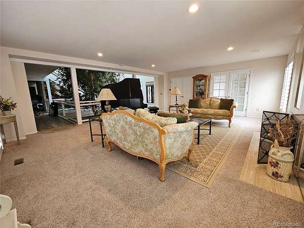 Spacious custom-built home at the end of a quiet cul-de-sac in the Chenango Equestrian Community. Enter through a sunroom to the main level and onto the dramatic, atrium-style foyer with a live tree growing from the lower level to the upper-level skylight. The formal living room with gas fireplace and the separate office/study both have Rocky Mountain views. The formal dining room is spacious with a vaulted ceiling. The just remodeled Chef’s Kitchen includes a Jenn-Air double oven, microwave and cooktop as well as a Ruvati workstation sink, instant hot water tap, all soft-close cabinets and drawers, Maytag dishwasher, Sub Zero frig/freezer, quartz counters, sun bench, and walk-in pantry. Large family room with gas fireplace, a wet bar with ice machine and wine cooler is just off of the kitchen. Spacious primary suite with private balcony, gas fireplace, skylights, and adjoining primary bath with his and hers walk-in closets, full-sized jacuzzi tub, dual head euro style shower, motorized skylight shades, marble tile and LED lighting. Large guest suite with large private bathroom. Two other bedrooms are joined by a newly remodeled Jack & Jill bath. New carpet and Italian Porcelain Tile throughout. Dual furnace/AC/humidifiers, Security/Fire monitored alarm system, WiFi system. Indoor rock garden with Koi Pond! Tons of natural light! Incredible outdoor space with views, mature evergreens and fruit trees, a gas firepit, 6-person spa, and privacy from the expansive all-steel frame maintenance free deck spanning the entire rear of the home. Huge lower-level walk-out. A heated oversized 3-car garage. Automatic sprinkler systems. Ride-on mower with attachments included. HOA features: bridle paths, horse arena, tennis/basketball/pickleball courts, children’s playground, large park with picnic gazebo. Planned Prairie Point golf memberships. Cherry Creek School District. Direct all inquiries to Seller. Rick. 562-773-7225. Buyer to verify all information. No sign, no lockbox.