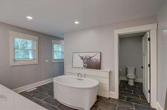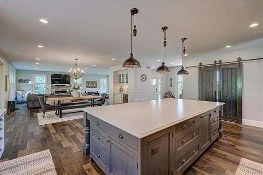 In The Woods of Watch Hill - on 2.28-acres this Traditional Contemporary farmhouse estate offers a serene and private setting in Verona. A welcoming private foyer opens to a spacious, open-concept floor plan designed for both everyday living and entertaining. The gourmet kitchen features a massive quartz island, top-of-the-line appliances, a wet bar, and a large pantry, seamlessly flowing into the dining and living areas. Hickory wood floors run throughout the main level, which also includes a living room with a gas fireplace and access to a large, screened porch-perfect for enjoying the peaceful surroundings. A functional country-style mudroom adds everyday convenience. The bedrooms have private baths. The luxurious primary suite offers walk-in closets, a spa-like walk-in shower, and a so
