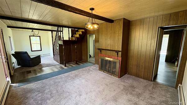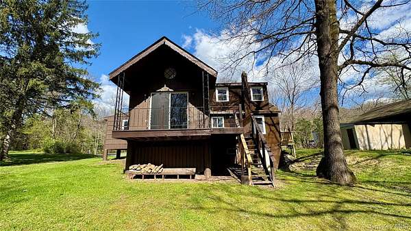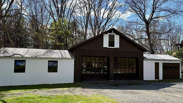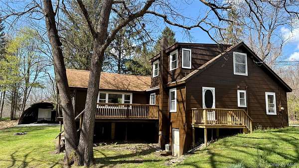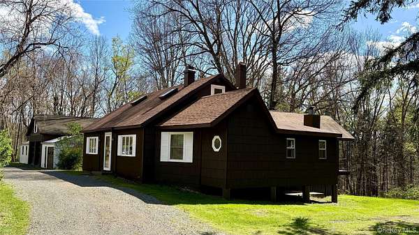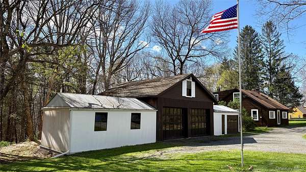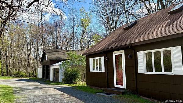 If you're looking for a home with character but there's still room to make it your own? This is the one. This nicely kept Cape on three beautiful wooded acres has tons to offer. Inside, the sunny family room is the place to be, featuring a vaulted ceiling , great views of the property, a balcony and a cozy fireplace for chilly nights. The kitchen has been nicely renovated with an eat-in area and a half bath. The flexible main-floor layout includes an office space and a bedroom (maybe even two!). There are two full an one half bathrooms in this home plus a basement shower. Upstairs, you'll find the primary suite, a bonus room and an updated bathroom with a double vanity that has a custom feel. Calling all car buffs and creatives: This property is a total game-changer. You've got a 1-car garage plus a large 2-car garage with a work pit! Need more space? There's also a Quonset hut nicely situated on the property that would make a killer artist studio or a spot to store your equipment. It's the perfect mix of a cozy home and a great workspace. Come see for yourself!