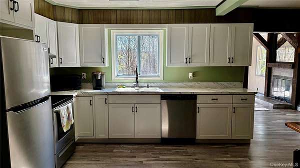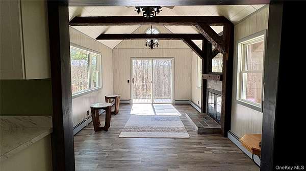 - Beamed Ceilings, Cathedral Ceiling(s), Chandelier, Double Vanity, Eat-In Kitchen, First Floor Bedroom, High Speed Internet, Primary Bathroom, Washer/Dryer Hookup