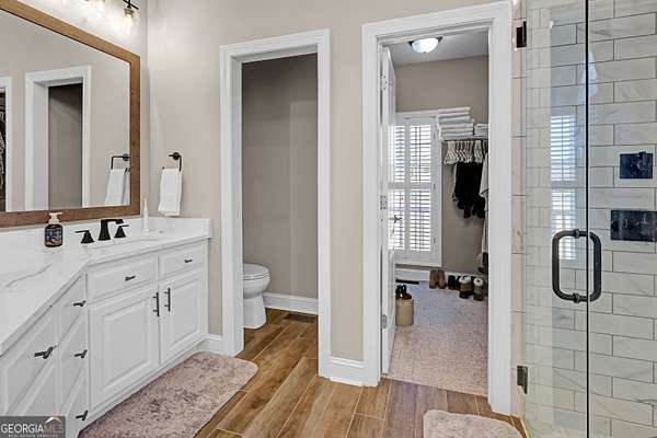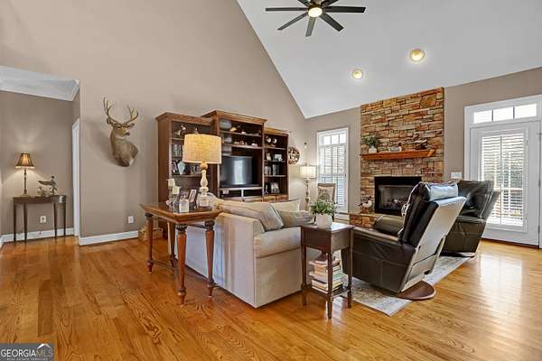 Welcome home to 76 Abbey Court, a beautifully maintained all-brick estate offering 5 bedrooms and 3 baths in a well-established neighborhood served by the highly desirable Pike County Schools. Set on an expansive 1.61-acre lakefront lot, this property delivers a rare combination of privacy, elegance, and breathtaking natural beauty. The grounds are meticulously cared for, featuring a well-manicured yard, sprinkler system, and a stunning saltwater in-ground pool complete with a water feature-all overlooking a serene lake. Whether you're hosting gatherings or enjoying quiet mornings, the panoramic views of the pool and water create an atmosphere of relaxation and luxury. Inside, the home offers oversized bedrooms, a dedicated dining room, and a warm, inviting family room with a fireplace-perfect for cozy winter days. The spacious kitchen provides abundant workspace and is complemented by custom-built cabinetry throughout, showcasing craftsmanship and convenience. A detached two-car garage adds flexibility for parking and storage, while the community's walking trail enhances the outdoor lifestyle. Perfect for entertaining or raising a family, 76 Abbey Court blends comfort, elegance, and an exceptional setting-creating a truly remarkable place to call home. The association owns and maintains the lake-as well as the 10 feet surrounding it-ensuring beautifully preserved shoreline and peaceful, pristine views year-round.