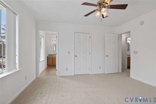 - Bath In Primary Bedroom, Bedroom On Main Level, Breakfast Area, Cable Tv, Ceiling Fans, Dining Area, Eat In Kitchen, Laminate Counters, Main Level Primary, Pantry, Walk In Closets