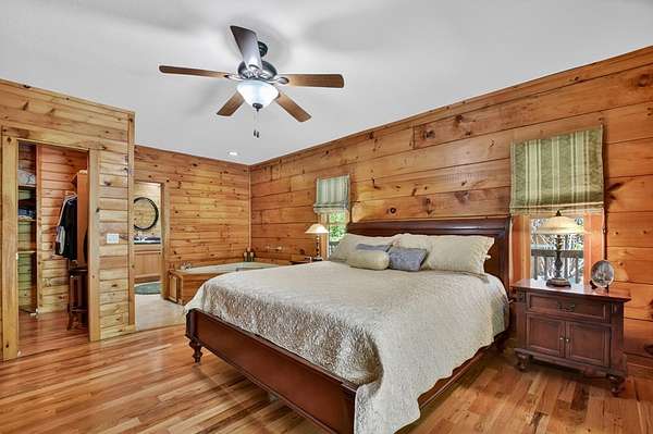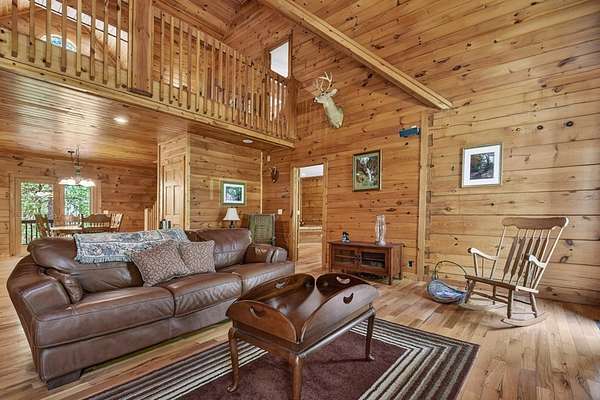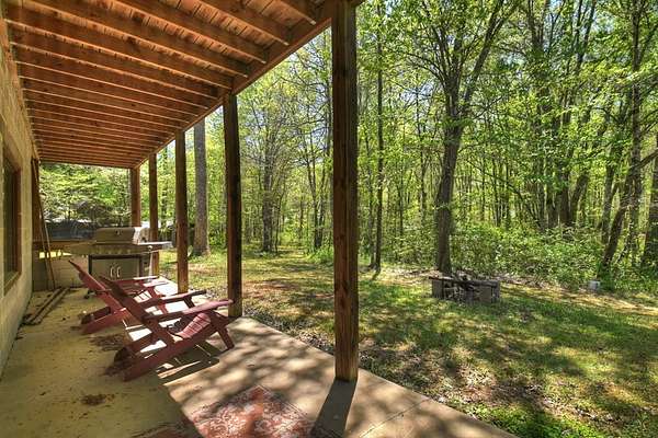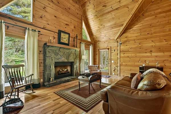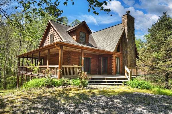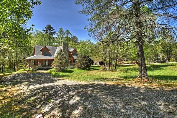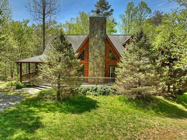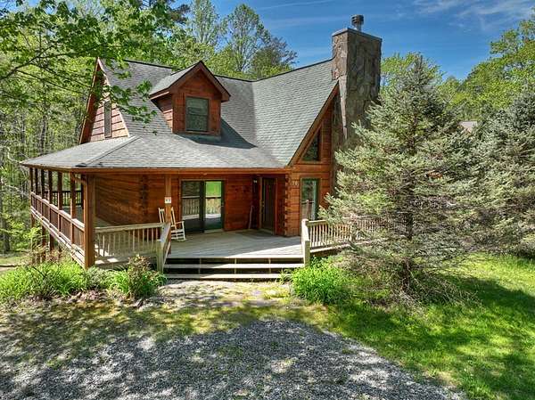 Tucked along the gentle banks of Little Sugar Creek, 76 E Bevan Lane is a custom-crafted rustic lodge offering the perfect blend of refined mountain luxury and total seclusion. Overlooking the soothing, rippling waters, this six-bedroom retreat with additional loft and four full baths is designed for both elevated living and unforgettable entertaining. A grand great room welcomes you with soaring ceilings, exposed wood elements, and a commanding stone wood-burning fireplace, creating a warm and inviting focal point. The gourmet kitchen flows seamlessly into a spacious dining area, ideal for hosting gatherings of any scale. The terrace level is built for leisure, featuring a full den and game room, while two laundry rooms provide convenience for larger groups or full-time living. Outdoors, expansive covered wraparound decks invite you to relax, dine, and take in the peaceful sounds of the creek below. With exceptional privacy, stunning frontage on Little Sugar Creek, and just minutes to Downtown Blue Ridge, this fully furnished property presents an extraordinary opportunity as a luxury retreat, full-time residence, or high-performing investment.