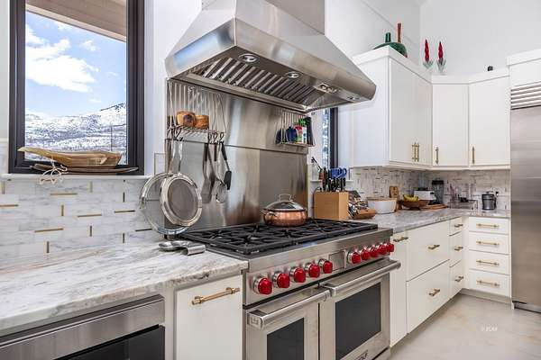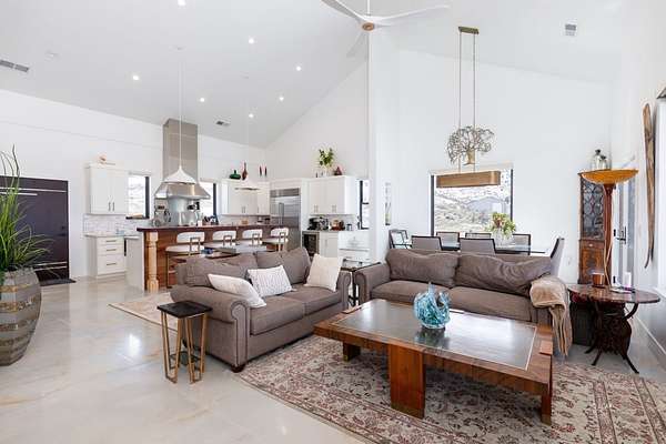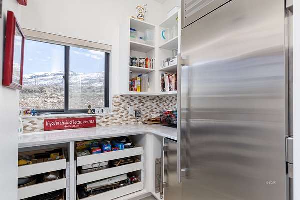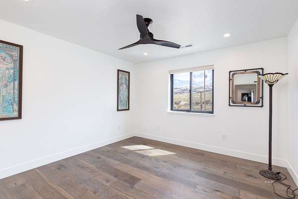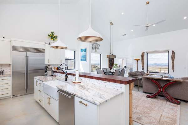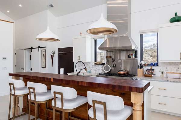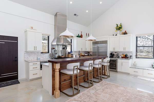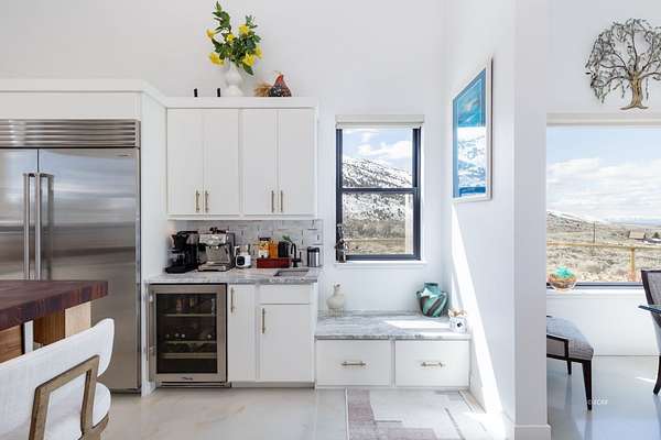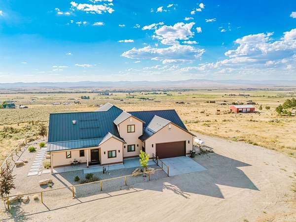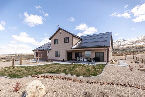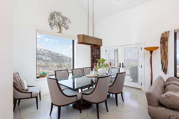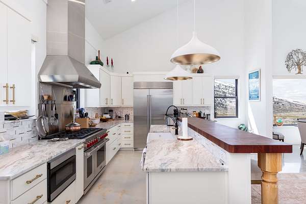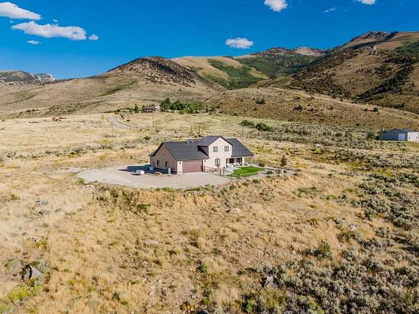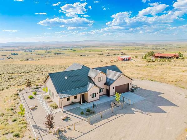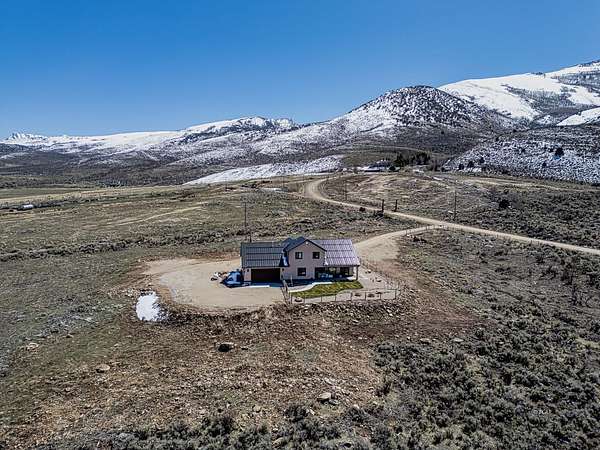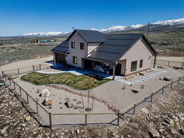 Located in sought after Lamoille gateway to hiking hunting and snow sports. The home features an open-concept plan that seamlessly connects the family, dining & kitchen areas with high end features throughout. Vaulted ceilings and large windows bring in natural light and offer valley and mountain views. Main level features radiant concrete/epoxy floors. At the heart of the home is a dream kitchen, complete with top-of-the-line appliances including Wolf brand 8 burner oven and hood, subzero fridge, in drawer microwave, euro style custom cabinetry a large center island with custom wood top breakfast bar, coffee area with insta hot water w/filter & beverage fridge, walk in pantry along with butlers pantry that has pullouts in cabinets, freezer and ice maker. The main suite offers a private retreat with a spa-like bathroom featuring walk-in shower, vessel sinks walk in closet, patio access. Laundry room has custom cabinetry and sink. Half bath on the main level features live edge slab Upstairs features office area, two additional bedrooms & bath with custom tile. Oversized pull through garage, metal roof with snow stops, covered patio, gated entry at the road