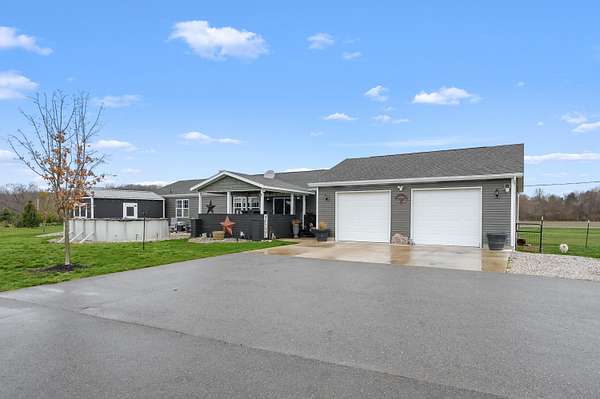 Welcome home to this stunning 1840 sq. ft. residence, nestled on 3.5 sprawling acres! Offering ample space and privacy, the home boasts an open floor plan, perfect for entertaining. The large kitchen with gorgeous cabinetry and a large center island is a cook's dream! The home features a luxurious ensuite with huge walk-in closet and private bathroom with soaking tub. The partially finished basement adds versatility to the property, perfect for additional living space or storage. The laundry room on the main floor brings ease to this chore! Enjoy outdoor living at its finest with an above-ground pool and a hot tub, ideal for entertaining or unwinding after a long day. Don't miss the opportunity to make this exceptional property your own, call to schedule your private showing today