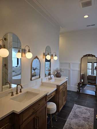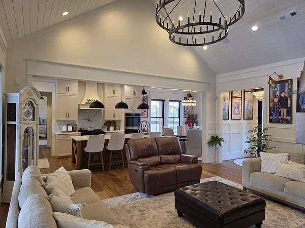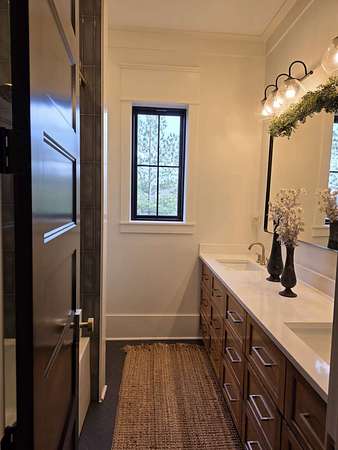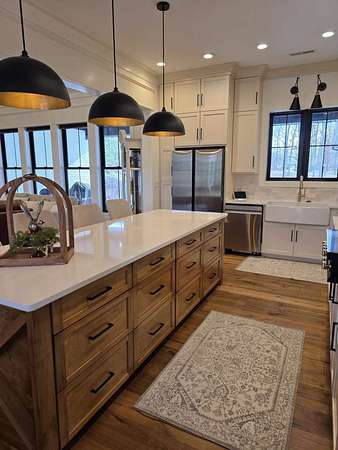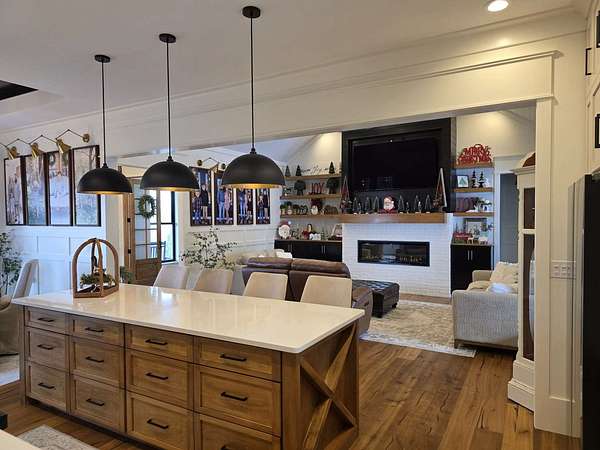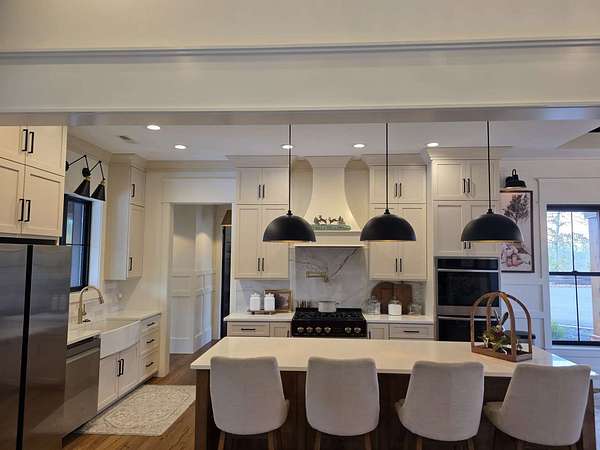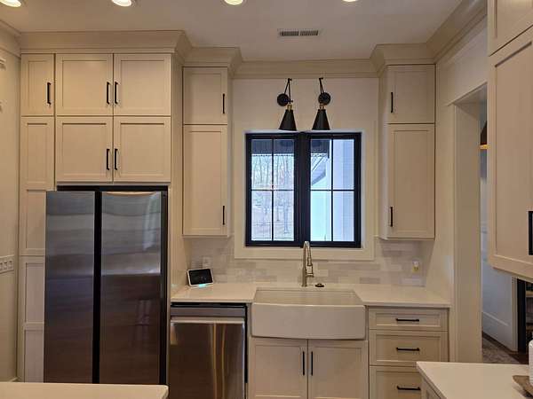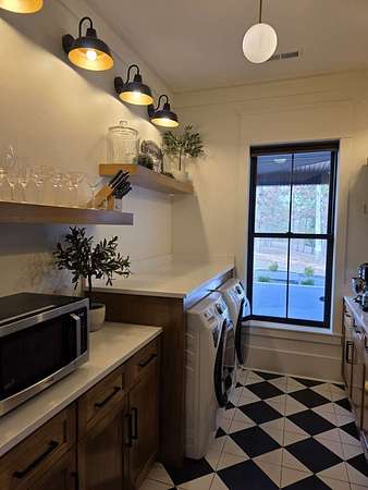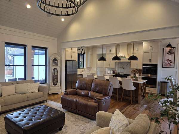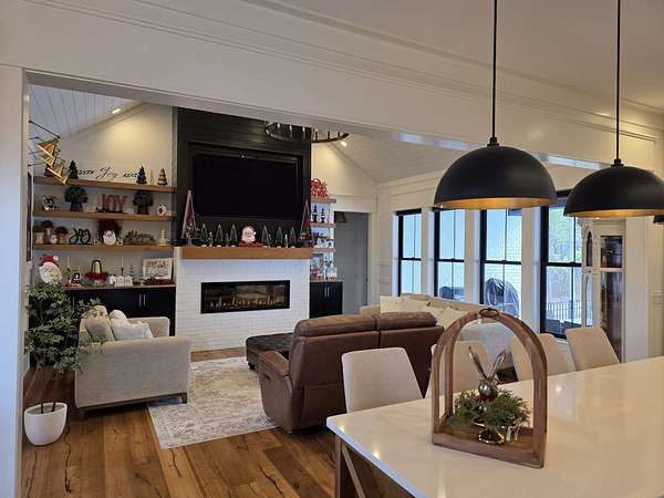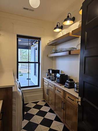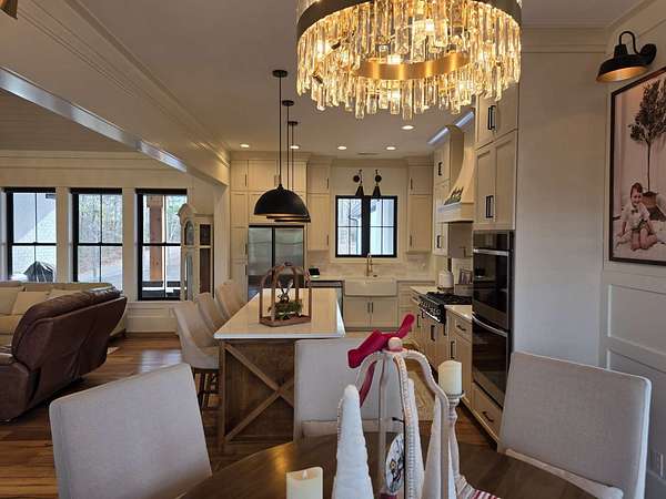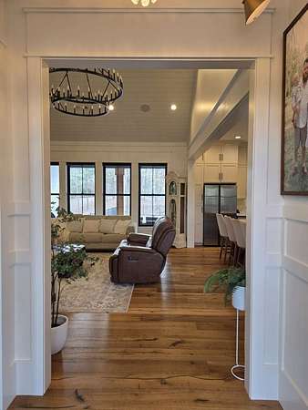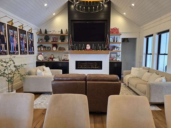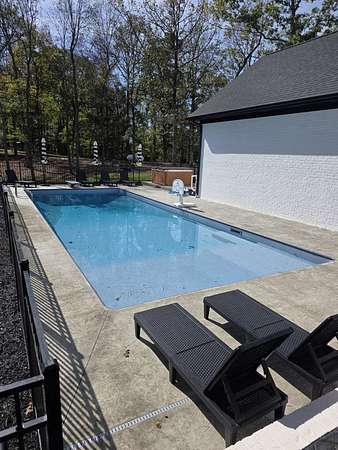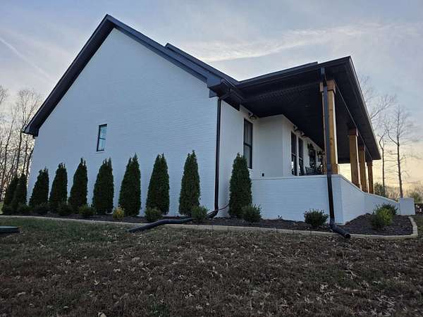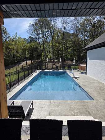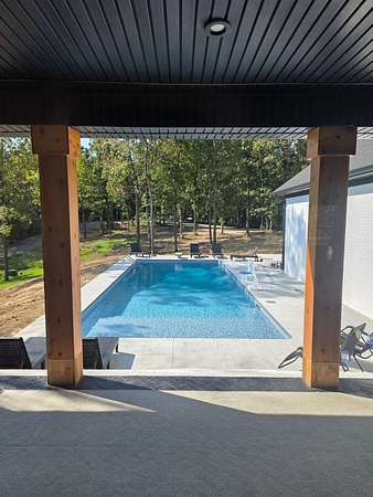 Heated Salt Water 16x42 Inground pool and hot tub. Pool has side to side steps in pool, 6' tanning ledge and seating. Pool has 8' deep diving section and is plumbed for a water slide. New Kentucky Lake Custom Craftsman Home. Located within 2 miles of the Big Bear Public Boat ramp along with other campgrounds/marinas such as Malcolm Creek, Whispering Oaks, Big Bear Resort and King Creek Resort. Home constructed in 2024 in the Birmingham Pointe subdivision. Home sits on +/- 2.161 acres. If you want seclusion and land to play on or expand on; but be close to the lake life, this is the home for you. Plenty of roads to walk or ride your golf cart/side by side on. Bring your boat, side by side and walking shoes and fit in with a lake community. On top of an excellent community on Kentucky Lake you will be enjoying a newly constructed custom home. First you will see an extra long driveway that passes through the +/- 2.161 acres. Easy access for boats, toys and all of your visitor's vehicles. Semi circle driveway near the front sidewalk puts an executive look to the driveway layout. With all the space and exits with this driveway system it is perfect for hosting or someone with many toys. Easily add additional structures/garages behind the home in the future. Exterior is brick painted a base white with Rombia; a special masonry formula devised for brick. The black garage doors, entry doors, fascia, soffit, lighting, porches, windows and roof really make this home pop. Porches and side walks are stamped concrete in a brick pattern. Dimmable barn lights over windows and next to garage doors. Dimmable can lights on both porches. Inside you will find 8' doors and openings throughout. All ceilings are 10' minimum with higher ship lap vaults in Great Room and master bedroom. You will find wainscoting throughout most of the house. Oversized 10" baseboards and oversized crown molding. Oversized Craftsman header trim over all doors/windows. Shiplap/brick fireplace in Great Room and