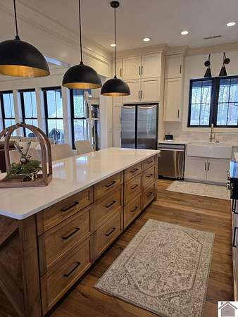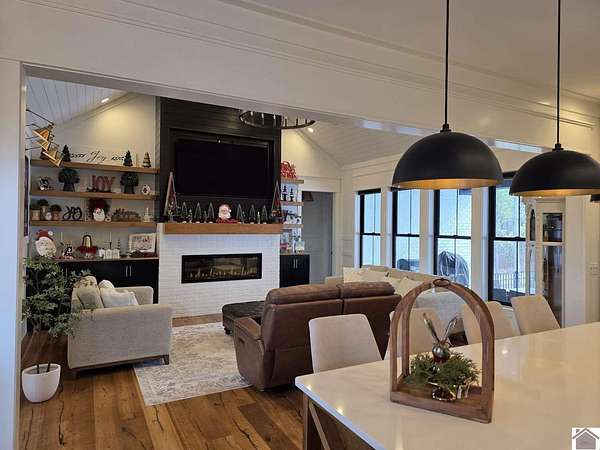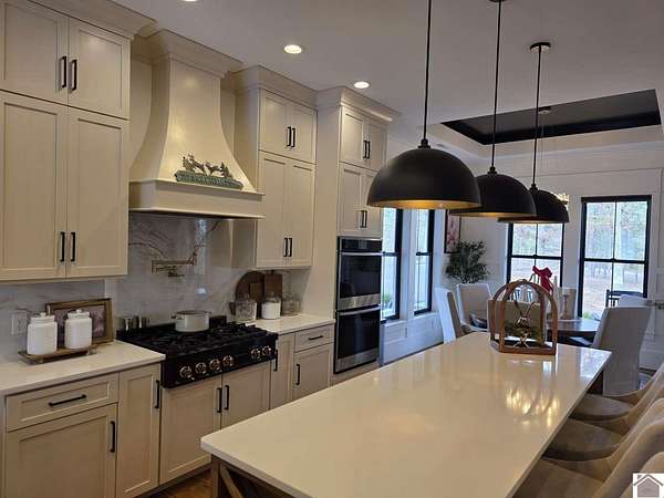 Heated Salt Water 16x42 Inground pool and hot tub. Pool has side to side steps in pool, 6' tanning ledge and seating. Pool has 8' deep diving section and is plumbed for a water slide. New Kentucky Lake Custom Craftsman Home. Located within 2 miles of the Big Bear Public Boat ramp along with other campgrounds/marinas such as Malcolm Creek, Whispering Oaks, Big Bear Resort and King Creek Resort. Home constructed in 2024 in the Birmingham Pointe subdivision. Home sits on +/- 2.161 acres. If you want seclusion and land to play on or expand on; but be close to the lake life, this is the home for you. Plenty of roads to walk or ride your golf cart/side by side on. Bring your boat, side by side and walking shoes and fit in with a lake community. On top of an excellent community on Kentucky Lake you will be enjoying a newly constructed custom home. First you will see an extra long driveway that passes through the +/- 2.161 acres.