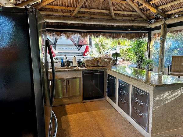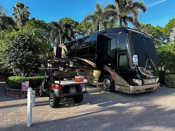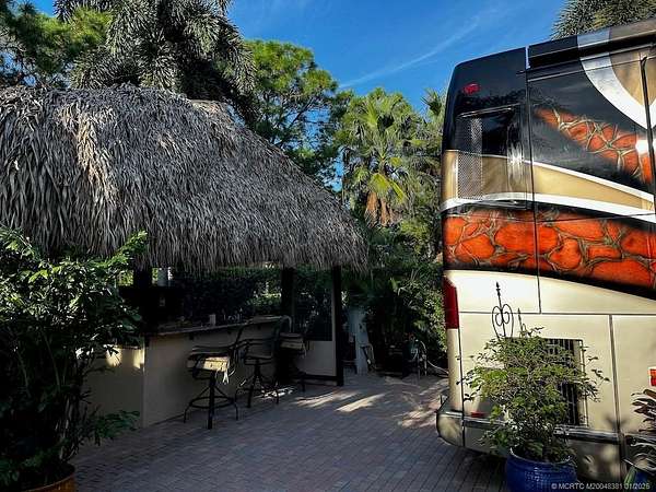 Discover the perfect combination of privacy, space, and luxury with this oversized, completely paver-stone-covered RV lot situated in a tranquil cul-de-sac. Nestled within a prestigious Class A-only motorcoach resort, this lot offers the ideal retreat for both seasonal visitors and full-time residents. The mature landscaping is thoughtfully designed and enhanced with upgraded landscape lighting, creating a beautiful ambiance both day and night. The newly built, spacious tiki hut is designed for comfort and convenience and features a fully equipped kitchen and bar, along with remote-controlled screens to ensure a seamless outdoor experience in any weather. The expansive design of the lot includes wide frontage, allowing for separate golf cart parking and ample space for outdoor furniture or recreational use. Whether you're entertaining guests or enjoying a peaceful escape, this property provides everything you need for a luxurious RV lifestyle. Opportunities like this won't last long!