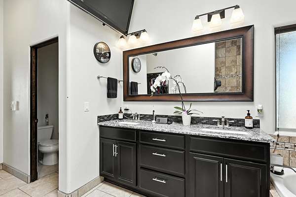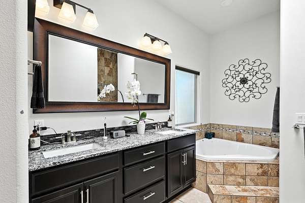 - Breakfast Bar, Ceiling Fans, Dual Sinks, Entrance Foyer, Jetted Tub, Kitchen Island, Main Level Primary, Pantry