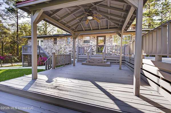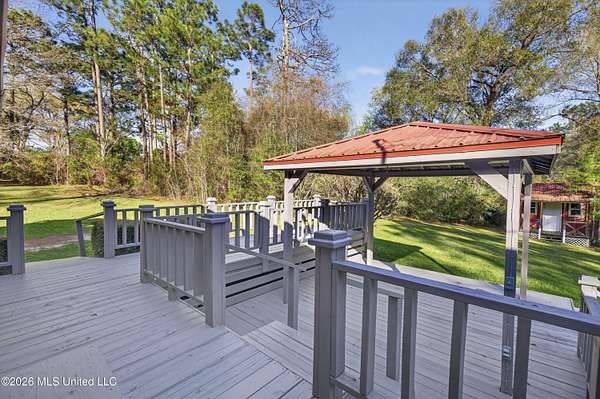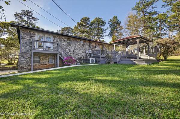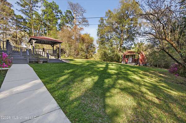 This home, located in the city of Lucedale, was custom-built in 1976. It has been well-maintained. There is a good flow throughout the main living area, connecting the kitchen, living room, and dining area. The main floor features 2 bedrooms, 2 bathrooms, and a large laundry room. The 1200sf basement was finished a few years ago and contains a kitchenette, living space with a wood-burning fireplace, a bedroom, and a large bathroom/laundry room. This welcoming space is accessed through the garage OR by using the stairs to descend from the main floor of the home. There are two porches and a large deck, which allows for opportunities to sit and enjoy the outdoor space of an almost 2-acre yard. The backyard is private with a large variety of trees lining the perimeter. The shed is spacious, includes electricity, and has an enclosed lean-to. There is a security system in this home that is also connected to the shed for added protection of the owner's belongings. This property offers the convenience of living in the city with the added seclusion and privacy offered by the large tree lined yard.