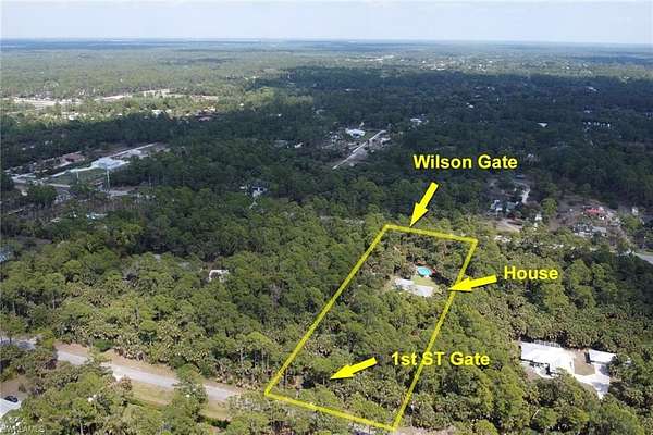 Room to Roam, Space to Love, and Freedom to Dream. Welcome to this beautifully maintained, private ranch-style pool home offering 3 bedrooms, 2 baths, and over 2,100 sq ft-perfectly situated on 2.34 acres of 100% uplands in Golden Gate Estates. Offering the ideal blend of privacy, space, and convenience, this property delivers the true Southwest Florida lifestyle-without HOA restrictions. This fully fenced property features two gated entrances-a 600 ft paved asphalt circular driveway at the front and a secondary entrance off Wilson Blvd N with a 300 ft gravel driveway, both equipped with automatic gates and sensors. Whether you have RVs, boats, work vehicles, or future expansion, this property is ready to accommodate. Additional highlights include an RV pad with power hookup, generator panel, additional asphalt parking, and a covered carport alongside the two-car garage. Inside, you'll find a bright, open layout with two spacious living and dining areas, a centrally located kitchen, and a split-bedroom floor plan designed for privacy. The primary suite offers direct lanai access, dual vanities, two spacious closets, and a walk-in shower, creating a comfortable retreat. The guest bathroom provides convenient access to the lanai, perfect for entertaining or poolside use. Meticulously maintained by the original owners; this home offers a clean slate- ready for your personal touch and vision. Step outside to your private outdoor oasis, where lush landscaping, a welcoming front firepit area, and an oversized screened lanai set the stage for outdoor living. Enjoy a sparkling above-ground pool with an expansive 33x12 deck, perfect for relaxing, entertaining, or simply enjoying Florida's natural beauty. The expansive yard offers endless possibilities, whether you envision a guest house, workshop, custom pool, hobby farm, or recreational space. With no HOA fees or restrictions, you have the freedom to truly make this property your own. Whether it's hosting gatherings, letting pets roam freely, or building your dream outdoor setup, this property is designed for both comfort and flexibility. Tucked away at the end of a quiet street and surrounded by newer homes, you'll enjoy peaceful country living just minutes from shopping, dining, and top-rated schools, including Big Cypress Elementary, Cypress Palm Middle, and Gulf Coast High School. Convenient access to Vanderbilt Beach Rd Extension, Publix, Tractor Supply, and more makes everyday living easy. No HOA. No restrictions. Endless potential. Whether you're looking for space, privacy, or future opportunity-this Golden Gate Estates gem truly has it all. Schedule your private showing today!