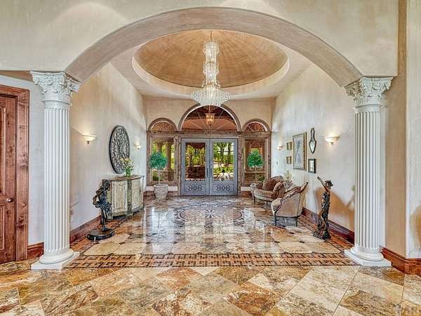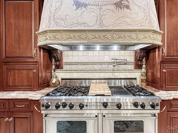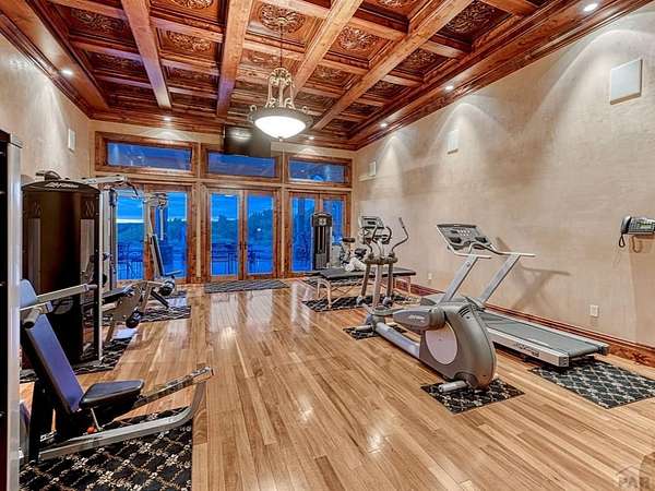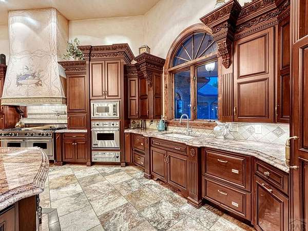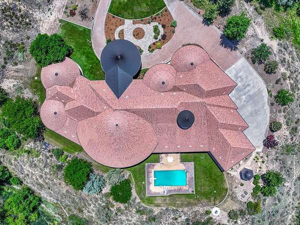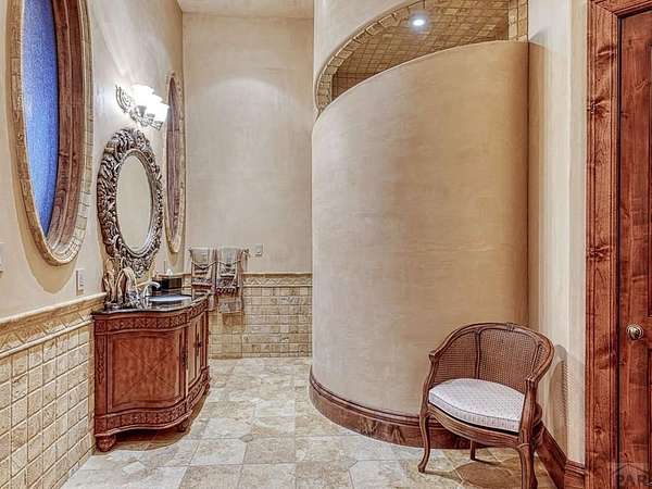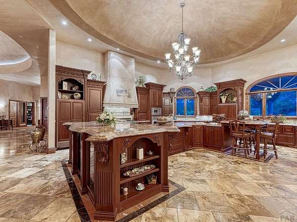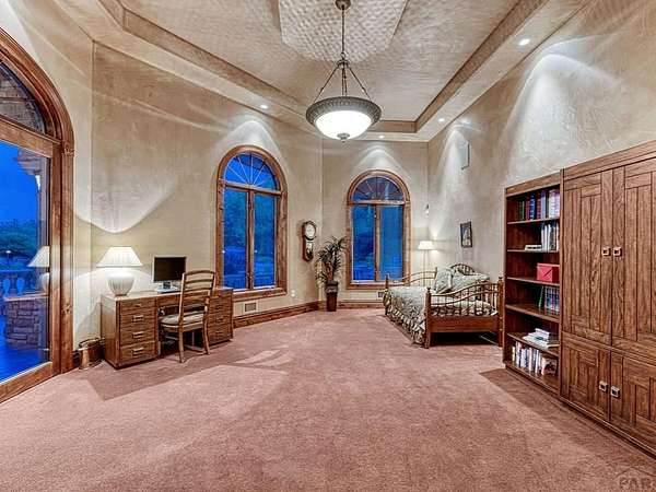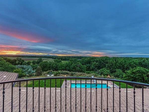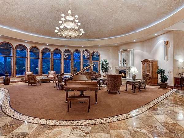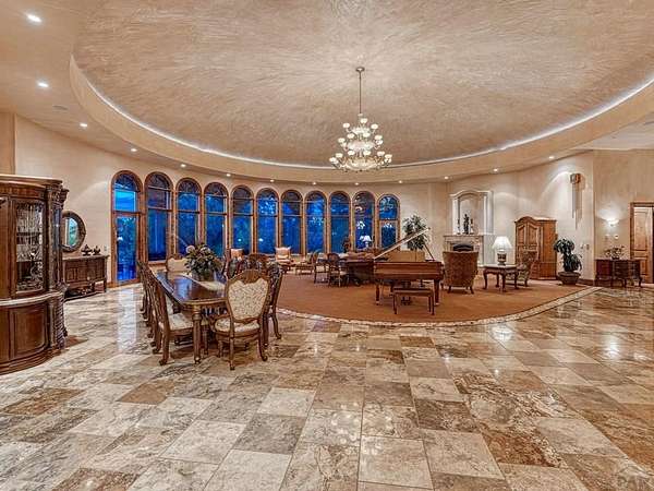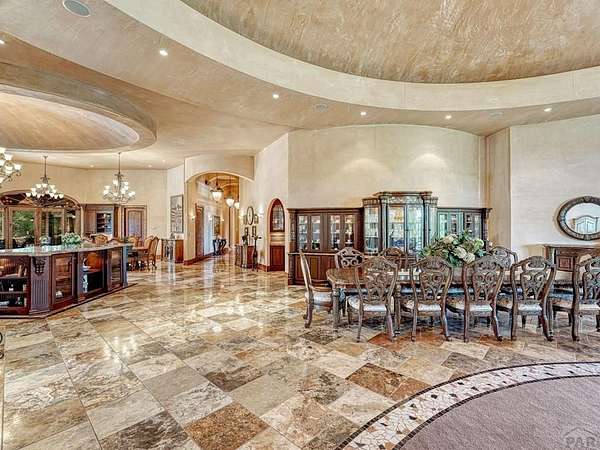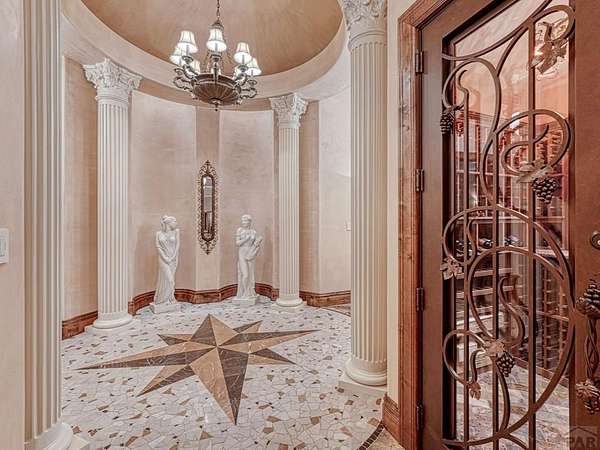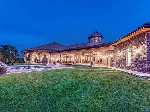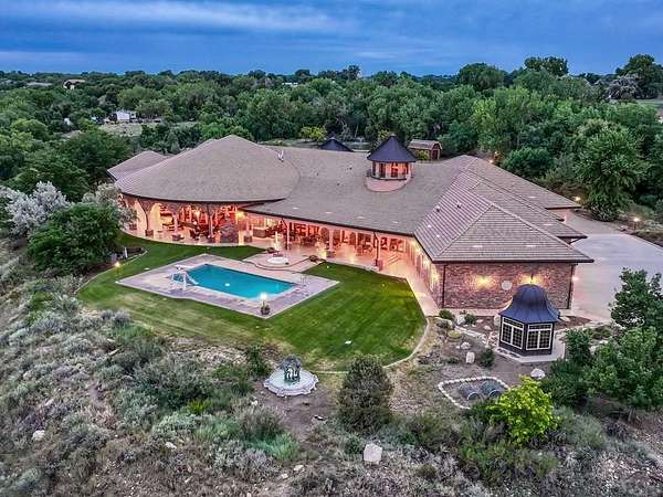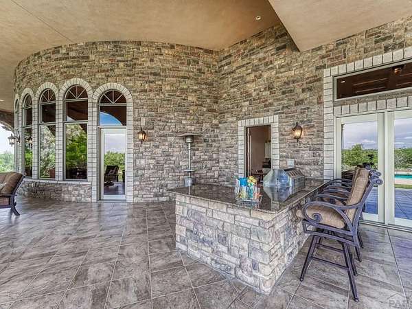 Perched high on a bluff near the Arkansas River, this remarkable estate on Pueblo's St. Charles Mesa offers the rare feeling of being worlds away while remaining just minutes from Pueblo Memorial Airport with both commercial and private jet service. A gated drive leads to a stunning Tuscan-inspired residence designed for both grand entertaining and everyday luxury. Rich cherrywood accents, radiant heated floors, hand-applied plaster finishes, marble details, and dramatic architectural elements create a home that feels both timeless and impressive in scale. The great room, crowned by a striking domed ceiling, anchors expansive living spaces. A chef's kitchen with high-end appliances, multiple prep areas, butler's pantry, and two additional kitchens makes entertaining effortless. Exceptional amenities include a private theatre with stadium seating and fiber-optic night sky ceiling, billiards and game room with spiral staircase to a private observatory, wine room, fitness studio, and serene retreat space. The primary suite offers a sitting area, spa-inspired bath, custom walk-in closet, wet bar, and private laundry. Outdoors, enjoy resort-style living with a pool, gazebo, fountain pond, and covered wraparound terraces with outdoor kitchen, built-in grill, and gas fireplace. Oversized 5+ car garage with workshop space completes this extraordinary Southern Colorado estate.